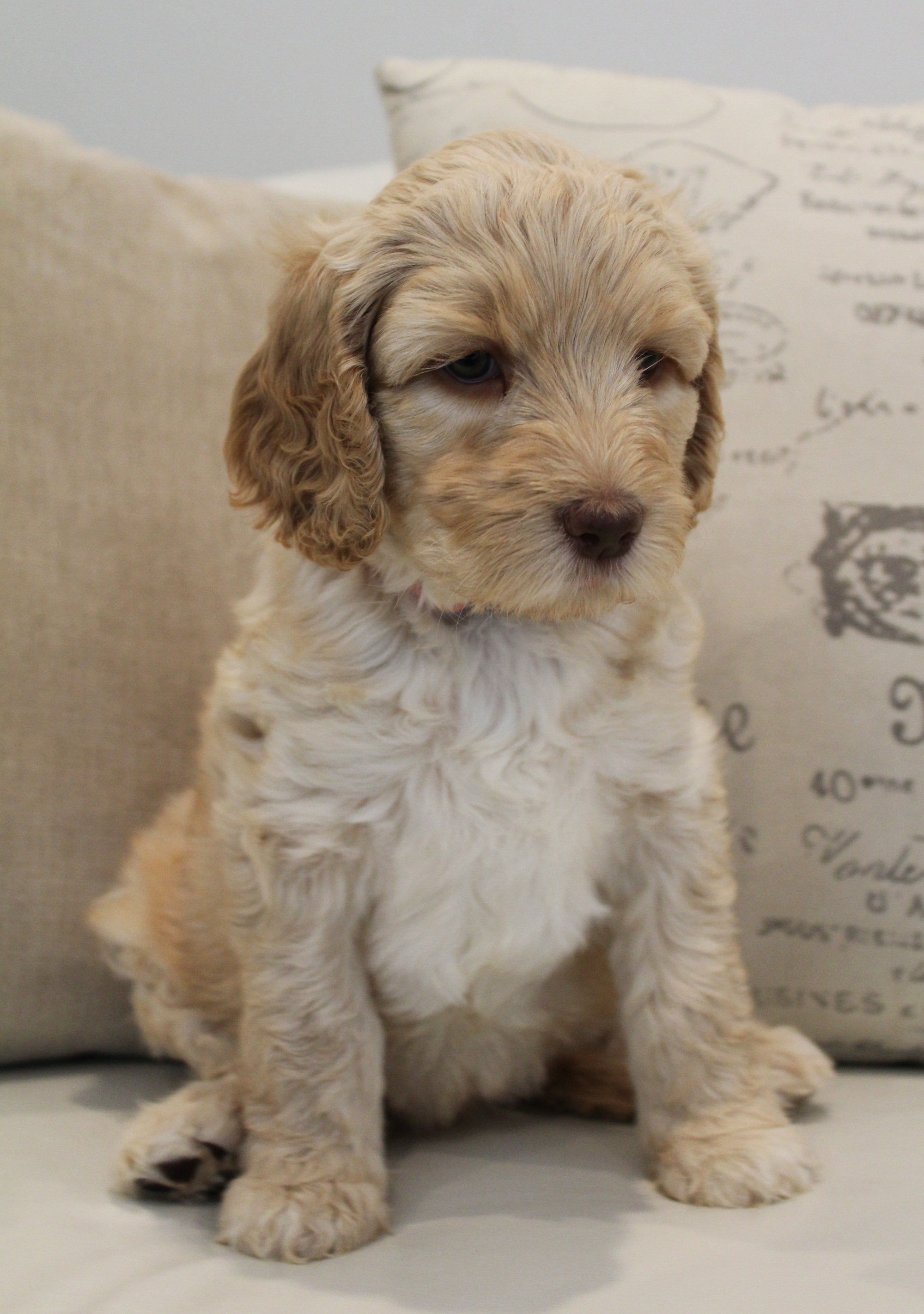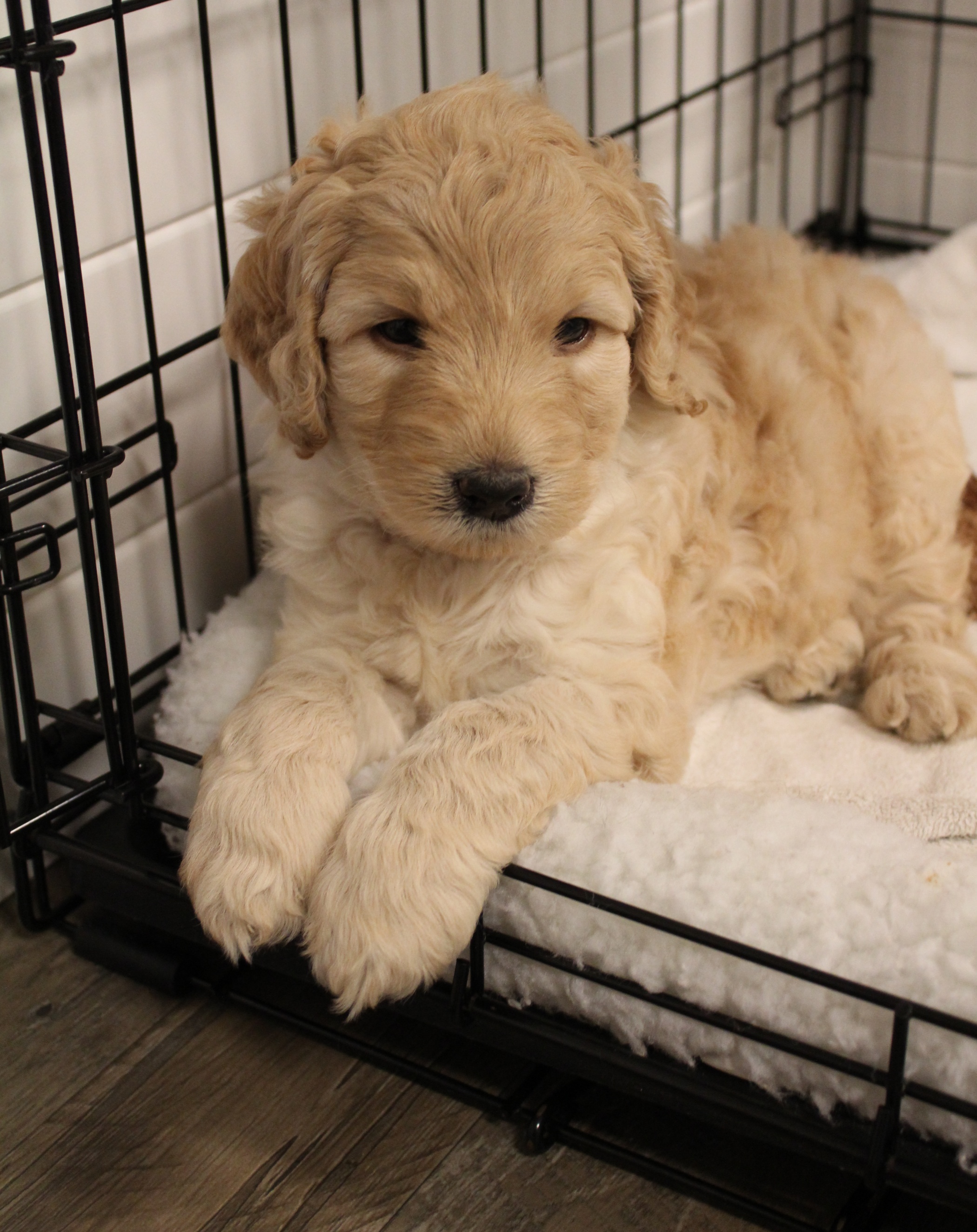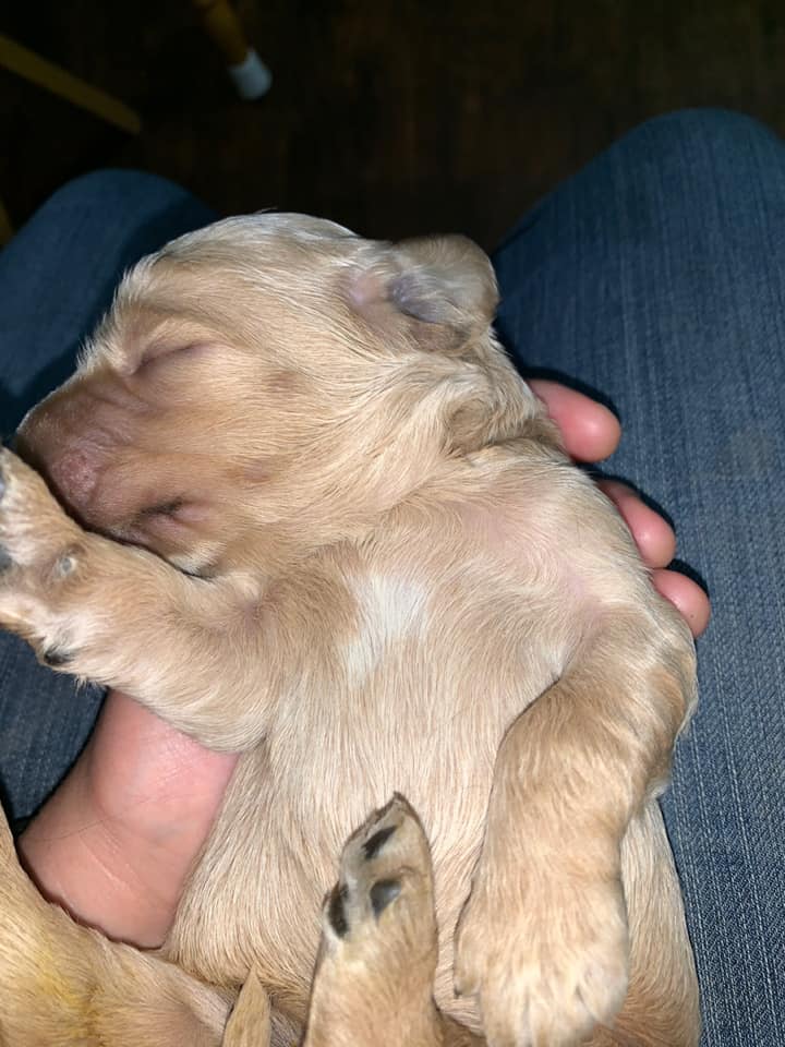 Hope 9 lbs. 1 oz. (Hope has been selected as the breeder choice to be held back and will enter the breeding program of Brickhaven Labradoodles in Washington. This choice was made based on Hope’s gender and size.)