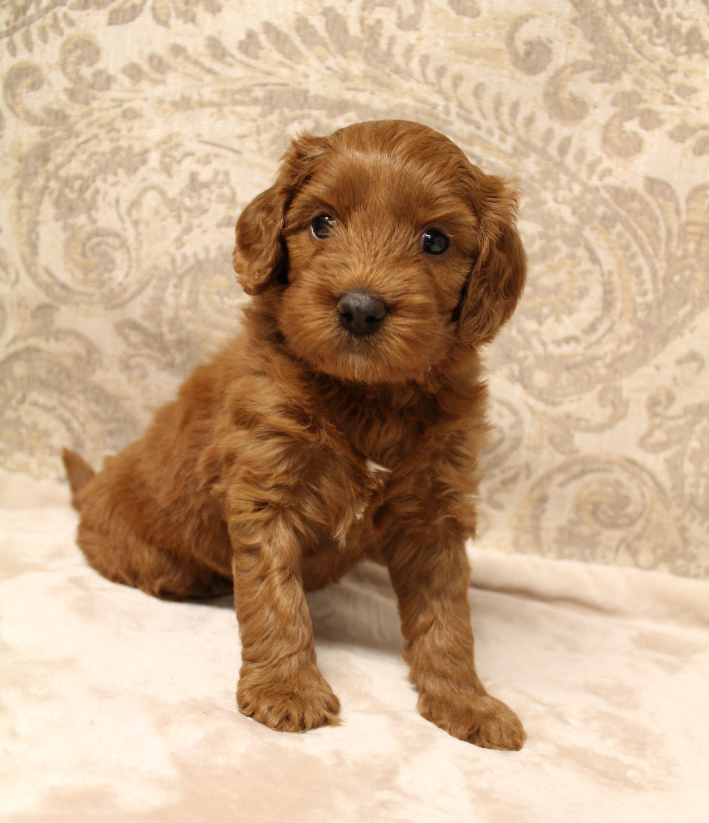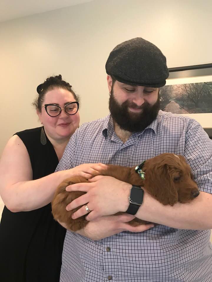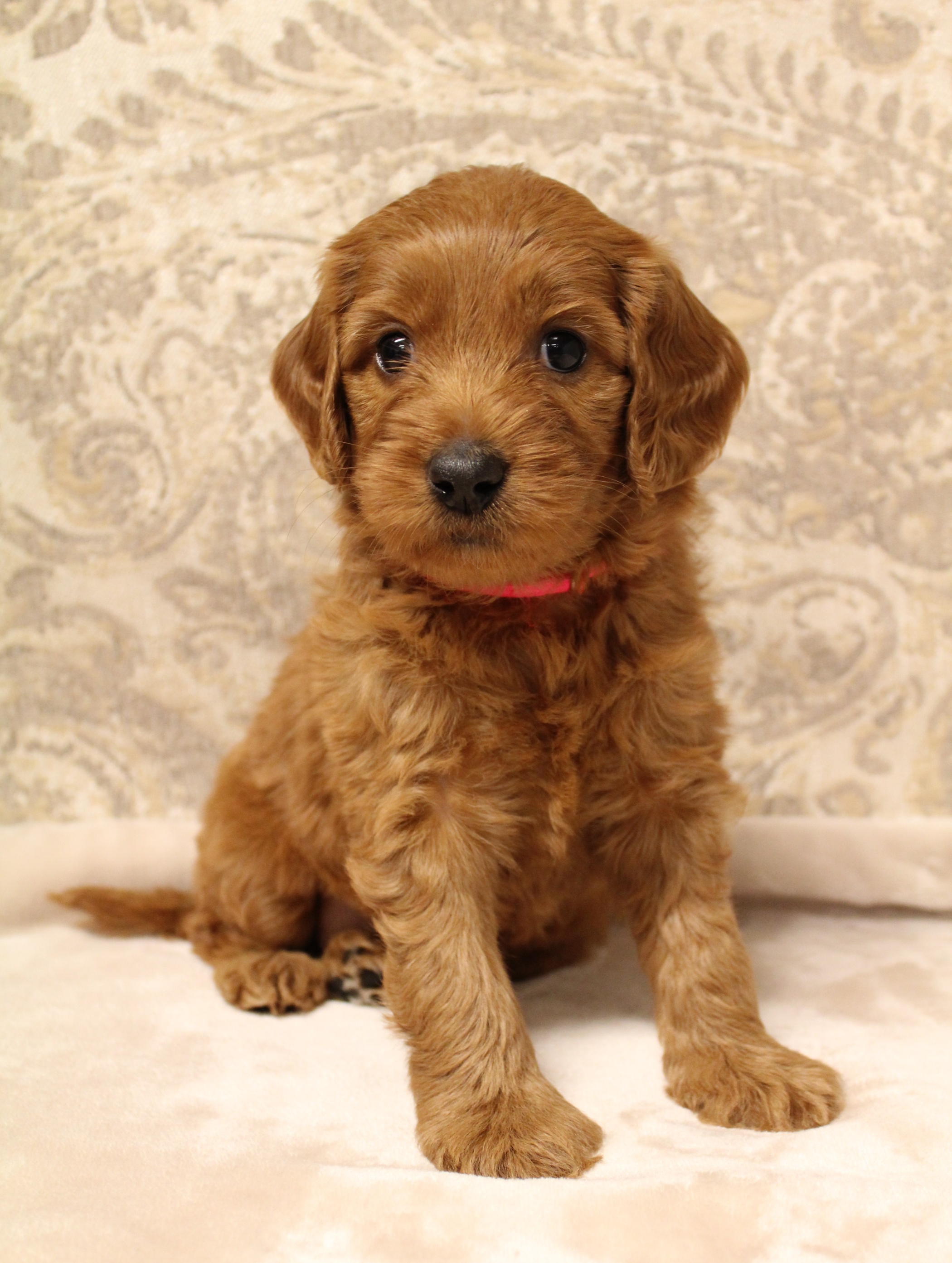 August 13, 2019 – Gretel surprised us and brought us six healthy, beautiful red pups two days early! They arrived with great birth weights, so apparently, they were done in there. They are nursing well at one day old, and Gretel did a good job with no problems. She’s taking great care of her pack. As a new mama, she jumped right in with cautiously watching over them and making sure they are all okay at every moment. It’s tough getting her to leave them even to do her business outside! All of the puppies seem to be thriving. We’ll weigh them regularly, as we always do that first week, and are watching closely. We see all of them are doing well! Gretel’s ultrasound seemed to indicate a couple more pups, but sometimes the vet is off in his count due to shadows or something. The litter is fully reserved now and thankfully, we didn’t have to turn anyone away that had been waiting. Gretel and Gunner gave us three red girls and three red boys. Some have a few limited white markings. We think this is going to be a beautiful litter – well, look at the parents! Here they are…….