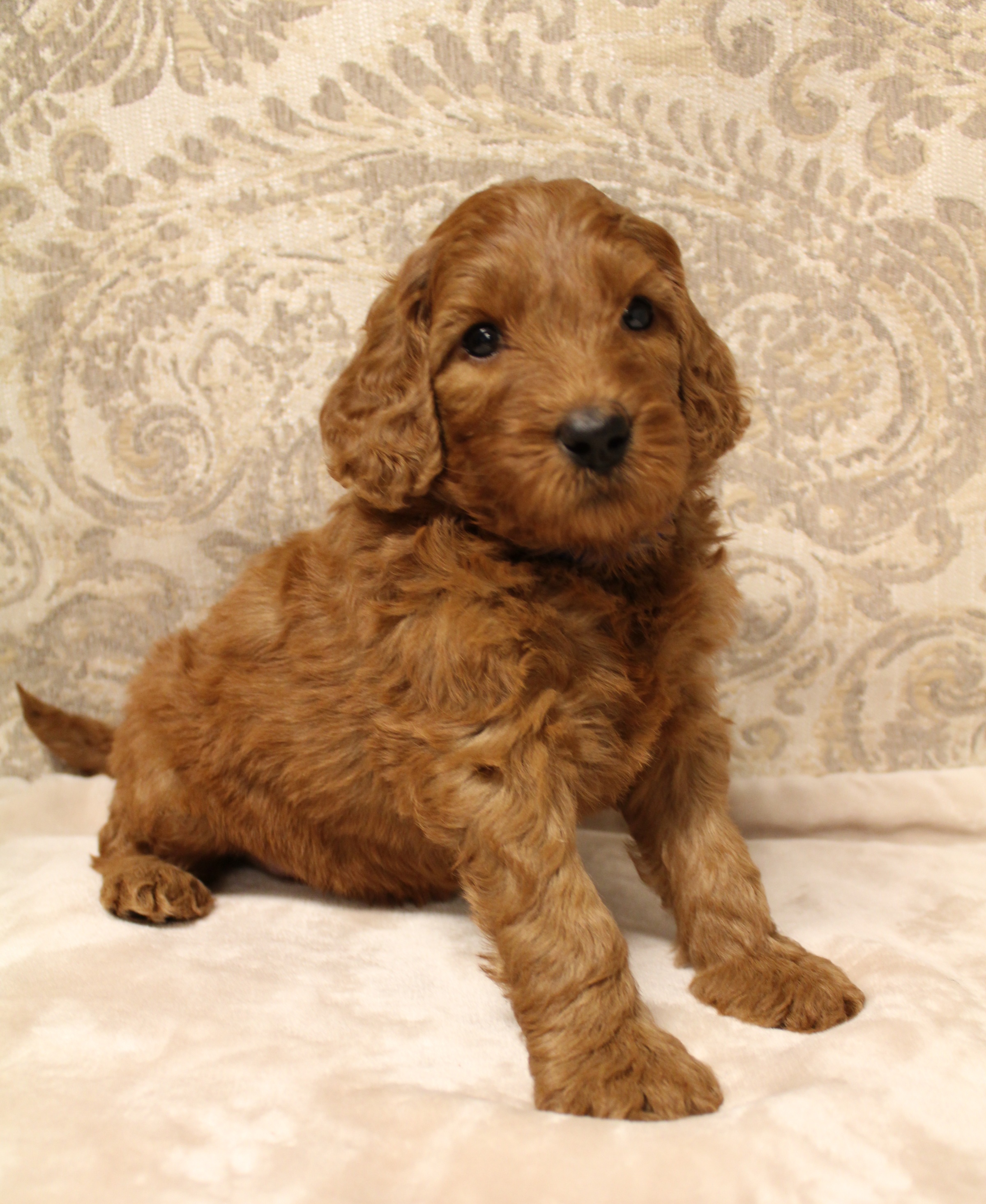 They are quite used to all kinds of sounds at this point and they don’t startle easily at all anymore. This is all part of creating non-reactive pups that grow up to be dogs without anxiety and pretty chilled out about everything! They do cry when they want mama, but a bowl of mushy kibble quiets them right down. They do love to eat! Ha, ha. And we love that because we don’t want skinny pups! Here they are at five weeks old, posing nicely for all of you for their picture. The next individual pictures will be posted again at seven weeks old, along with official weights from the vet. Wow, time if flying by! We’ll post a little update next week along with a group photo. And we’ll get some more videos posted on Instagram as well. We are really enjoying these pups! Adorable in every way.