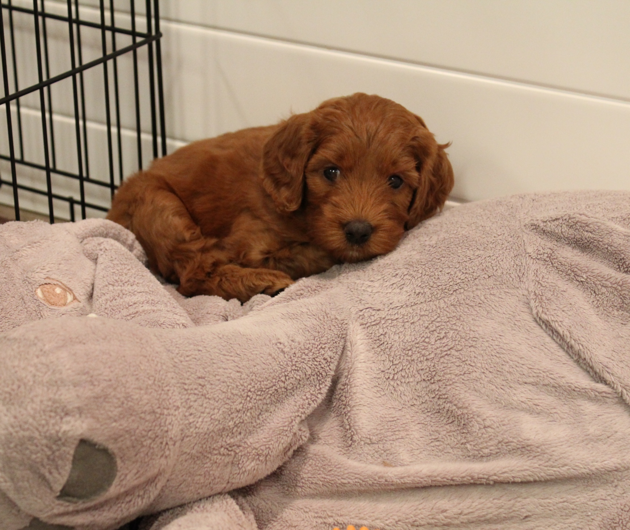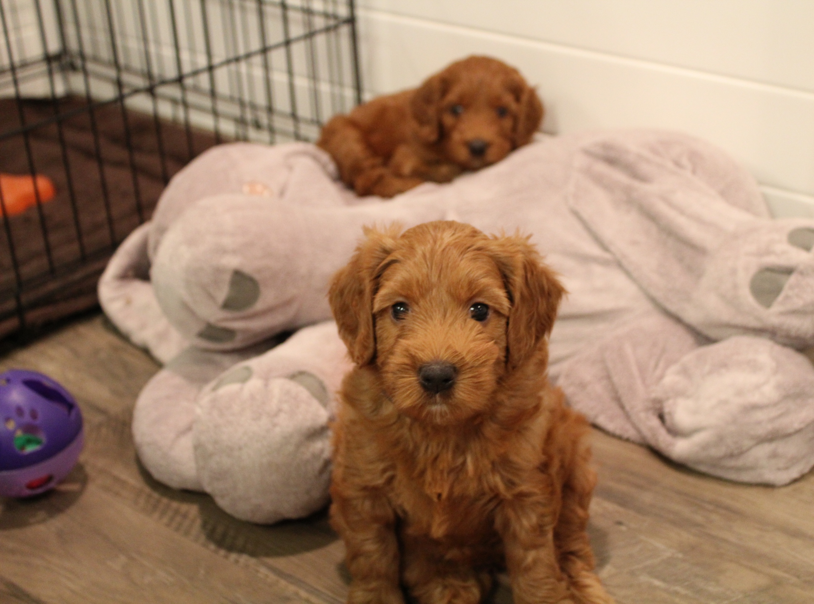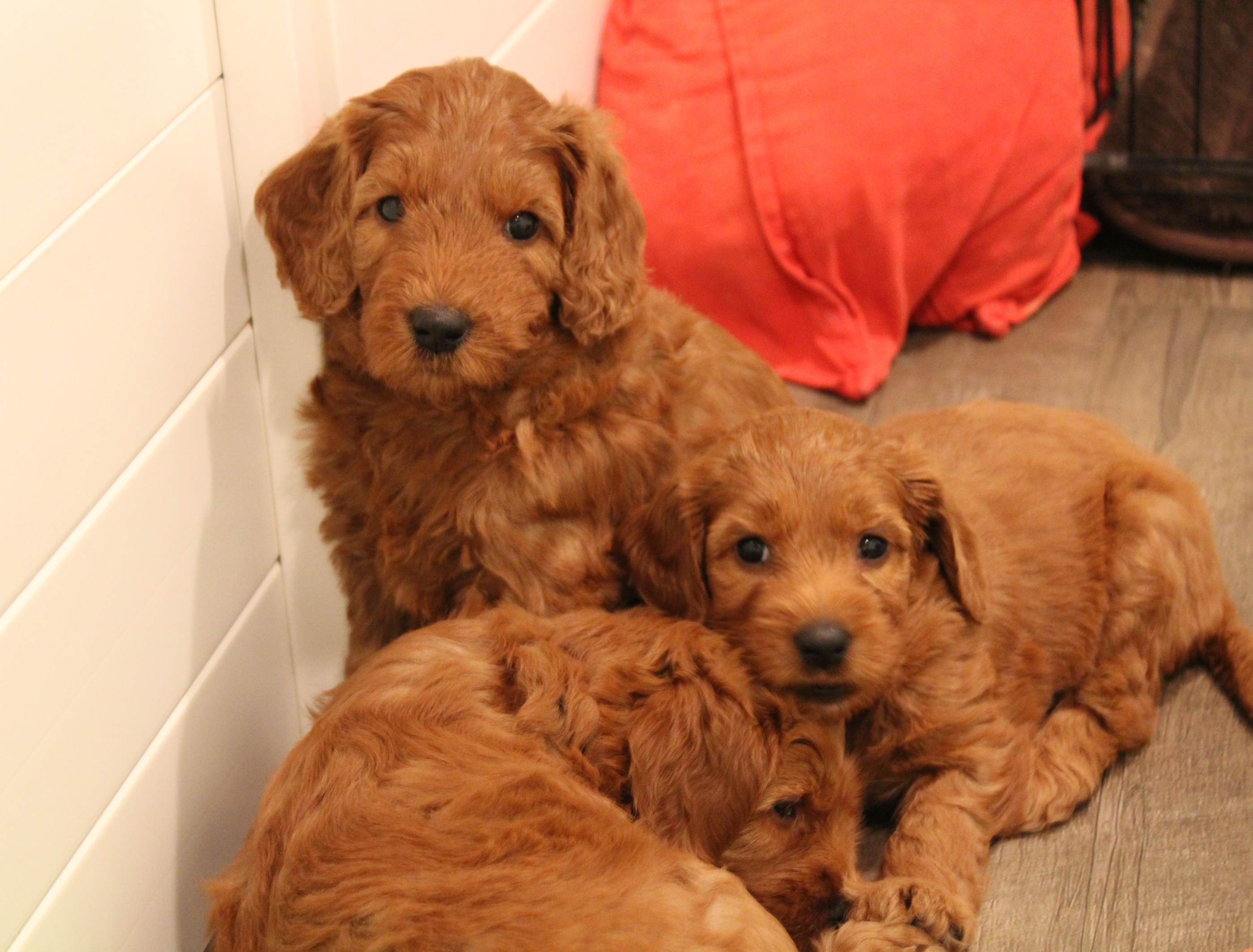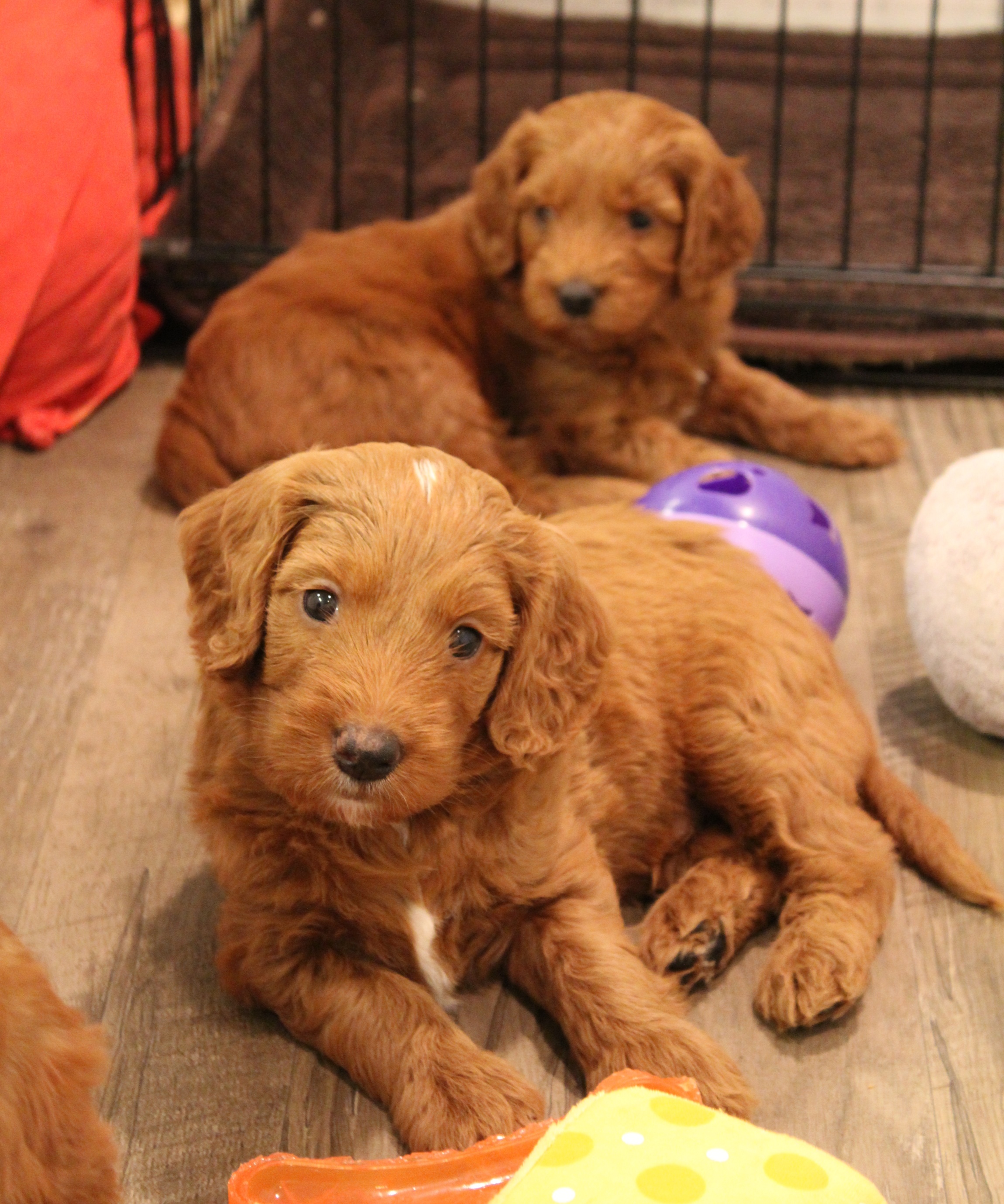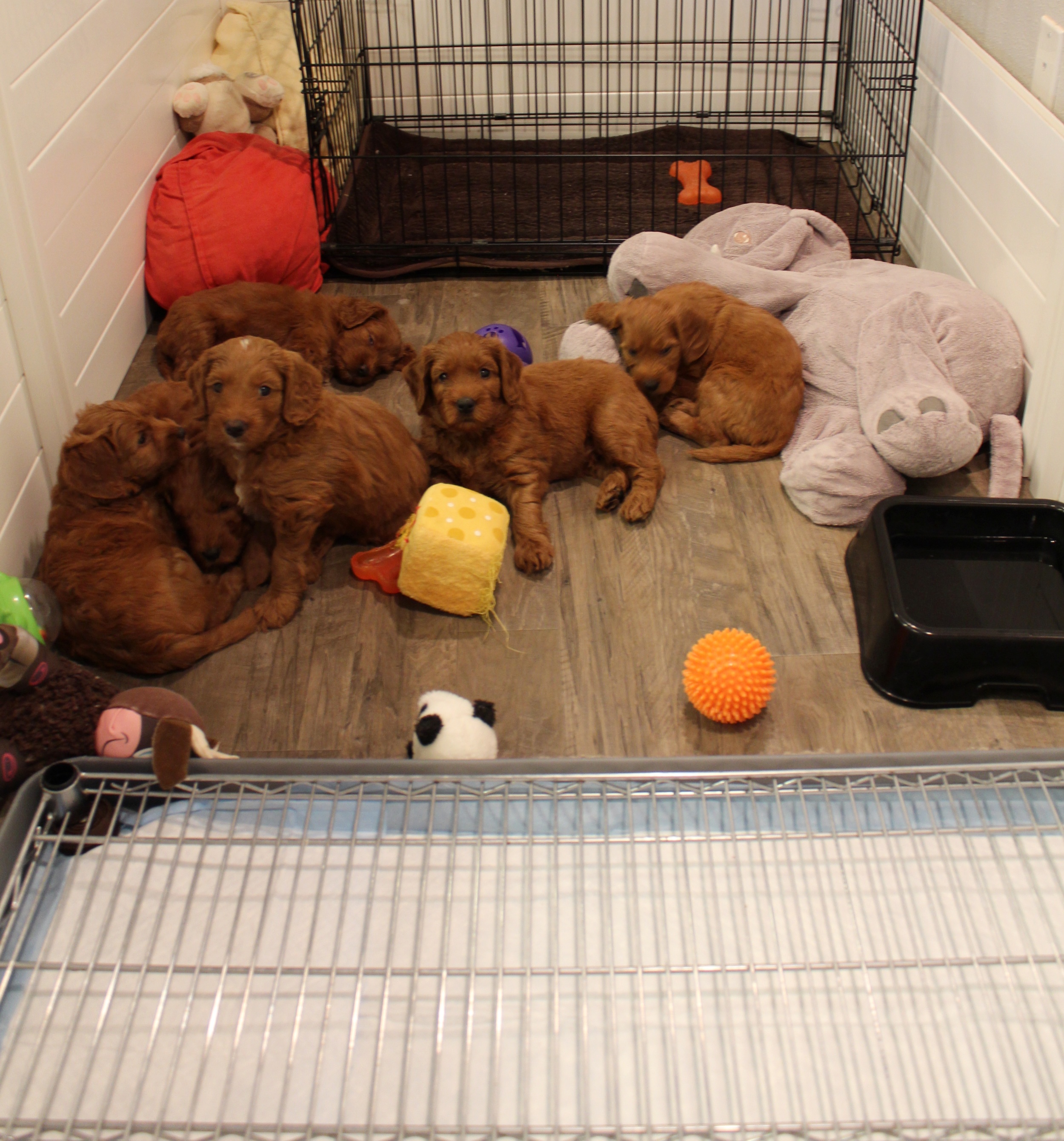 The puppies have progressed to right where we want them to be. We’ve come a long way on crate training, and mostly, they are quiet in a crate alone twice a day for about an hour. The days of crying still happen, but mostly they are learning to settle themselves down and be okay by themselves. They’ll still have an adjustment time after leaving us, our smells, and their litter, but this process of crate training here should make the process at home much easier and short-lived.