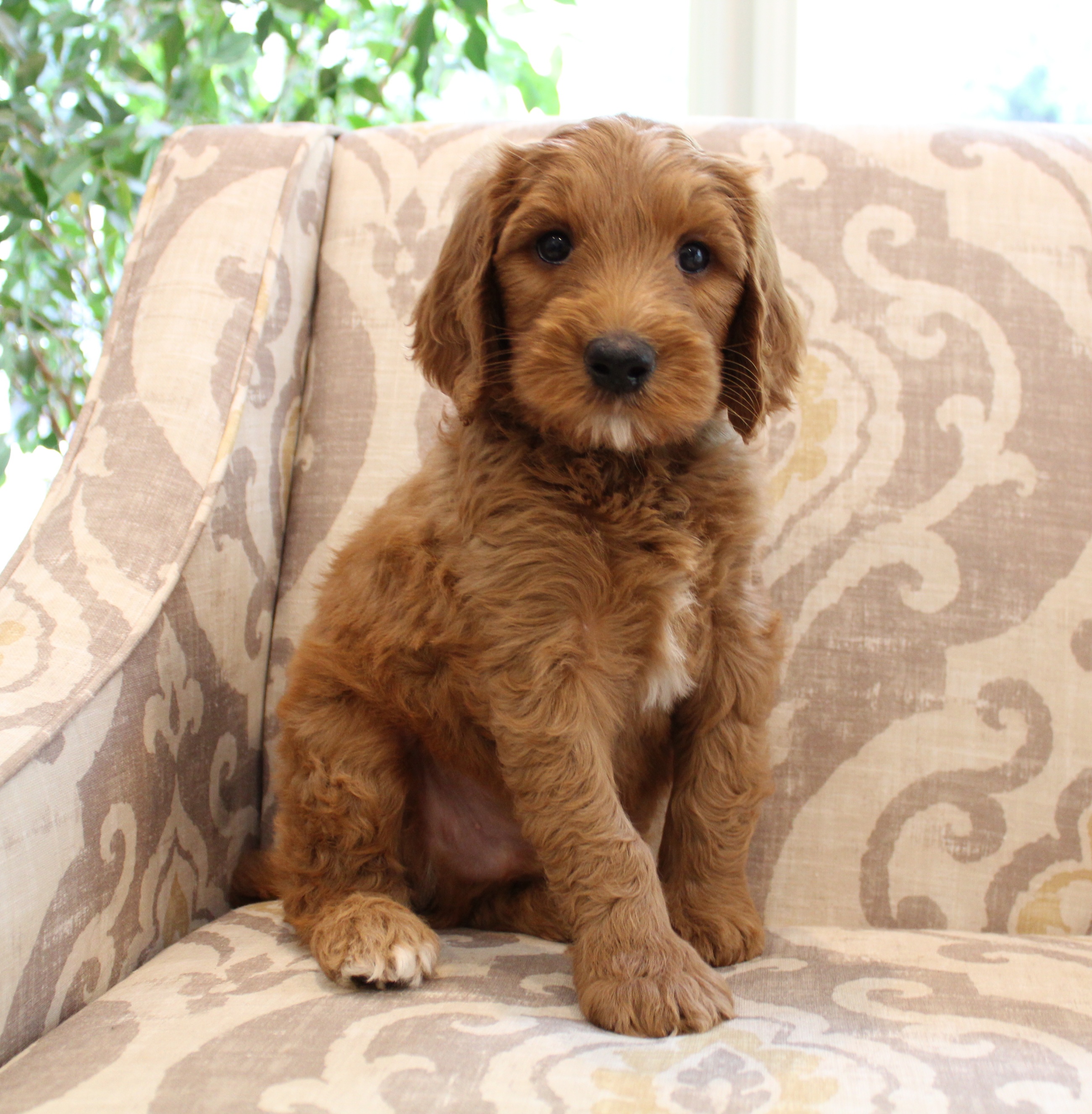 July 18, 2019 – Five weeks old and doing great! They are eating well, playing hard, and still so loving and wanting to settle down in our arms quickly. They track us as they watch us closely (something we always like to see in a loving, connected pup) and they are growing in confidence daily. We don’t see timidity, we see calm, adaptable pups that have been challenged and conditioned, exposed to many experiences, sounds, people and surroundings, and well on their way to a great life! They are using their litter box like champs and they are separating from mama naturally as they should, and focusing on their human caregivers. Here they are, posing nicely for their pictures.