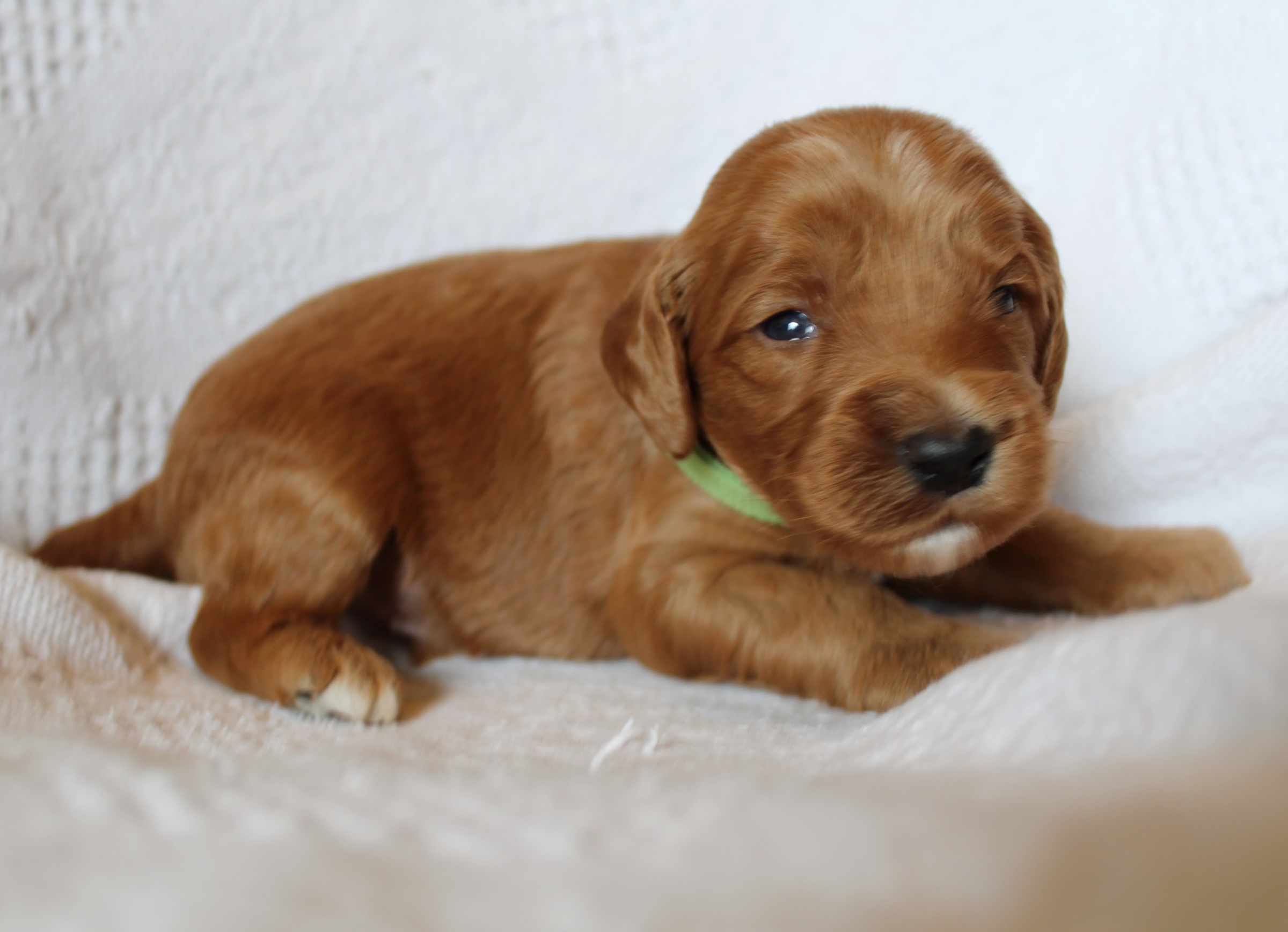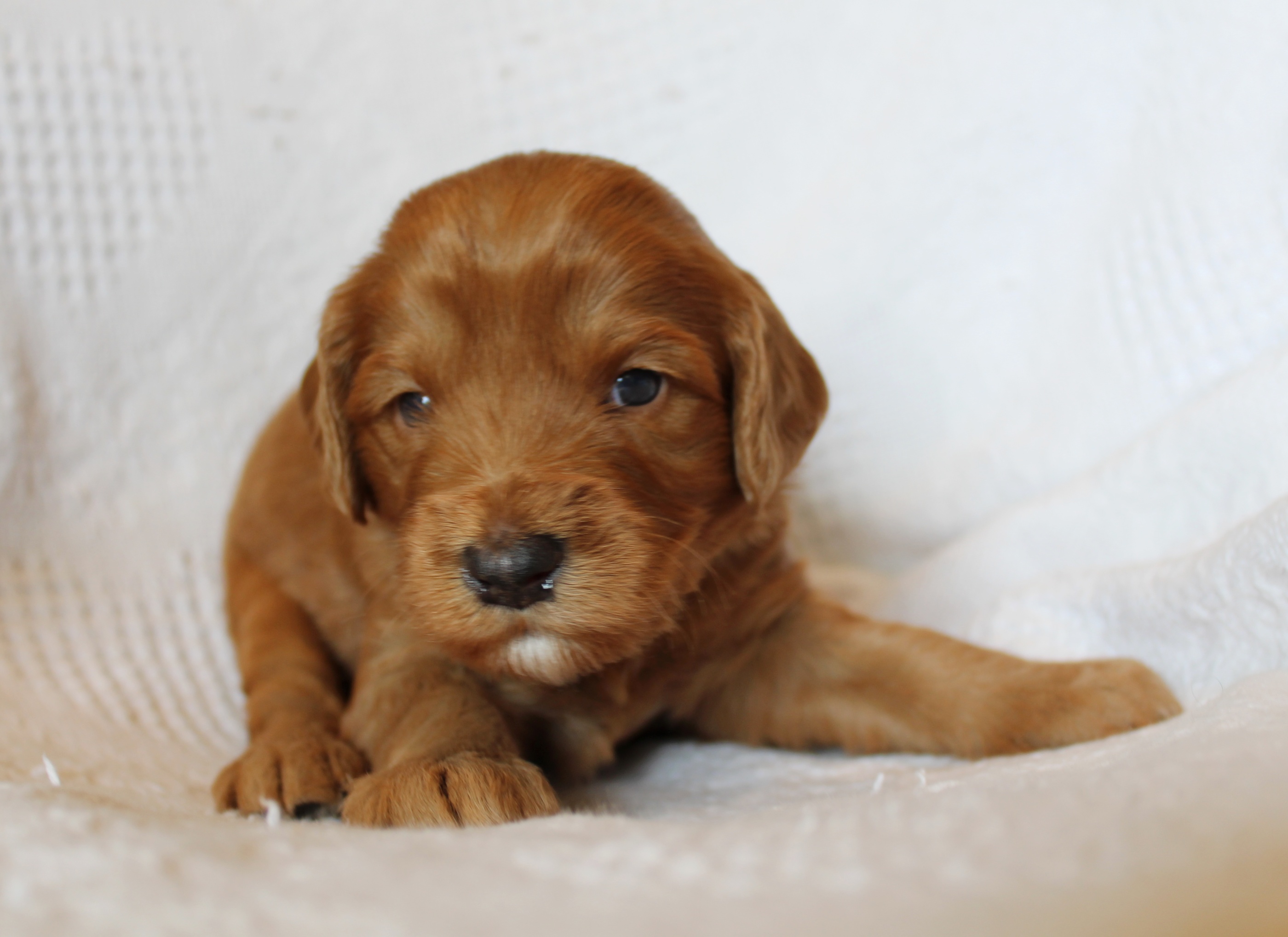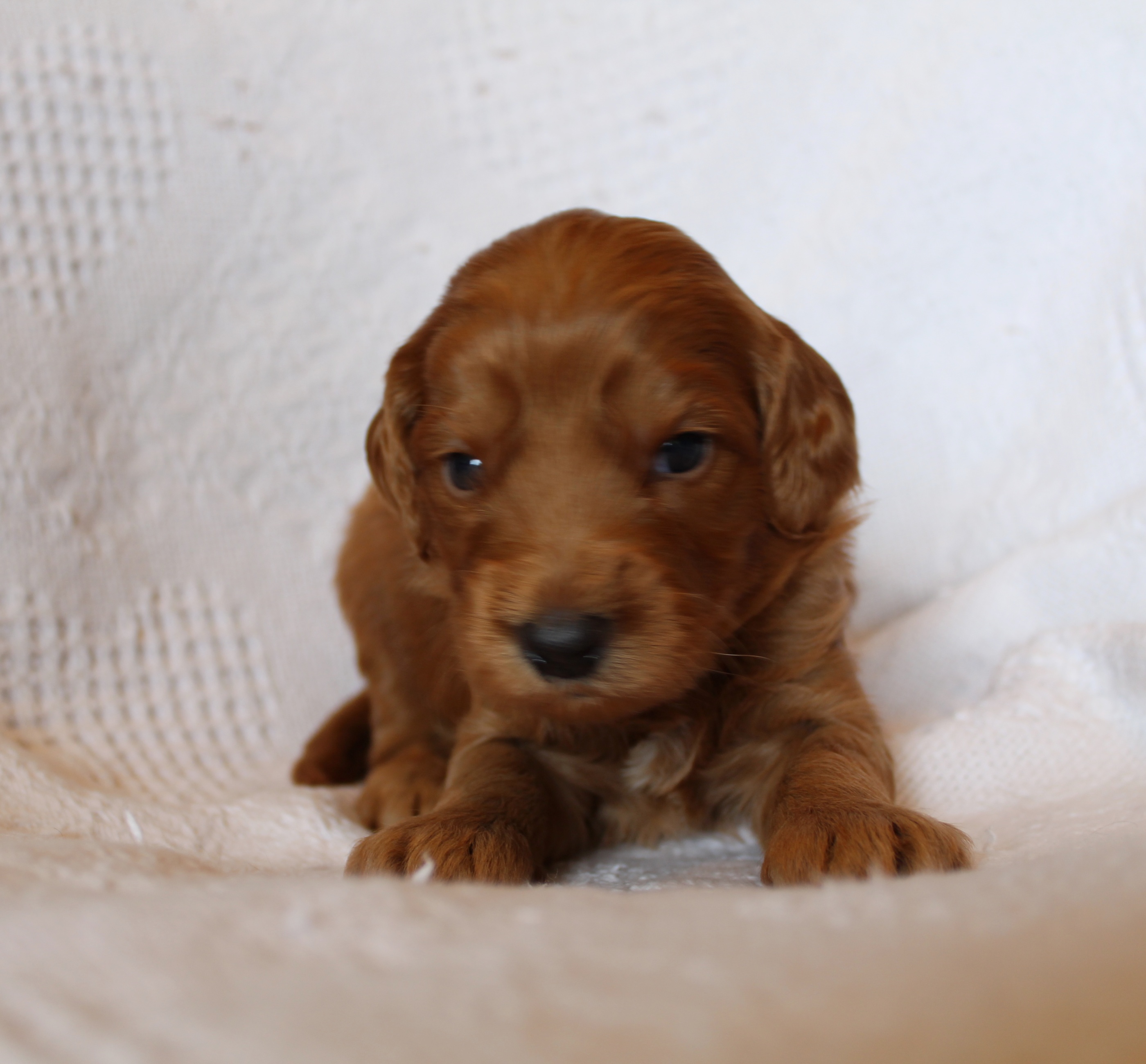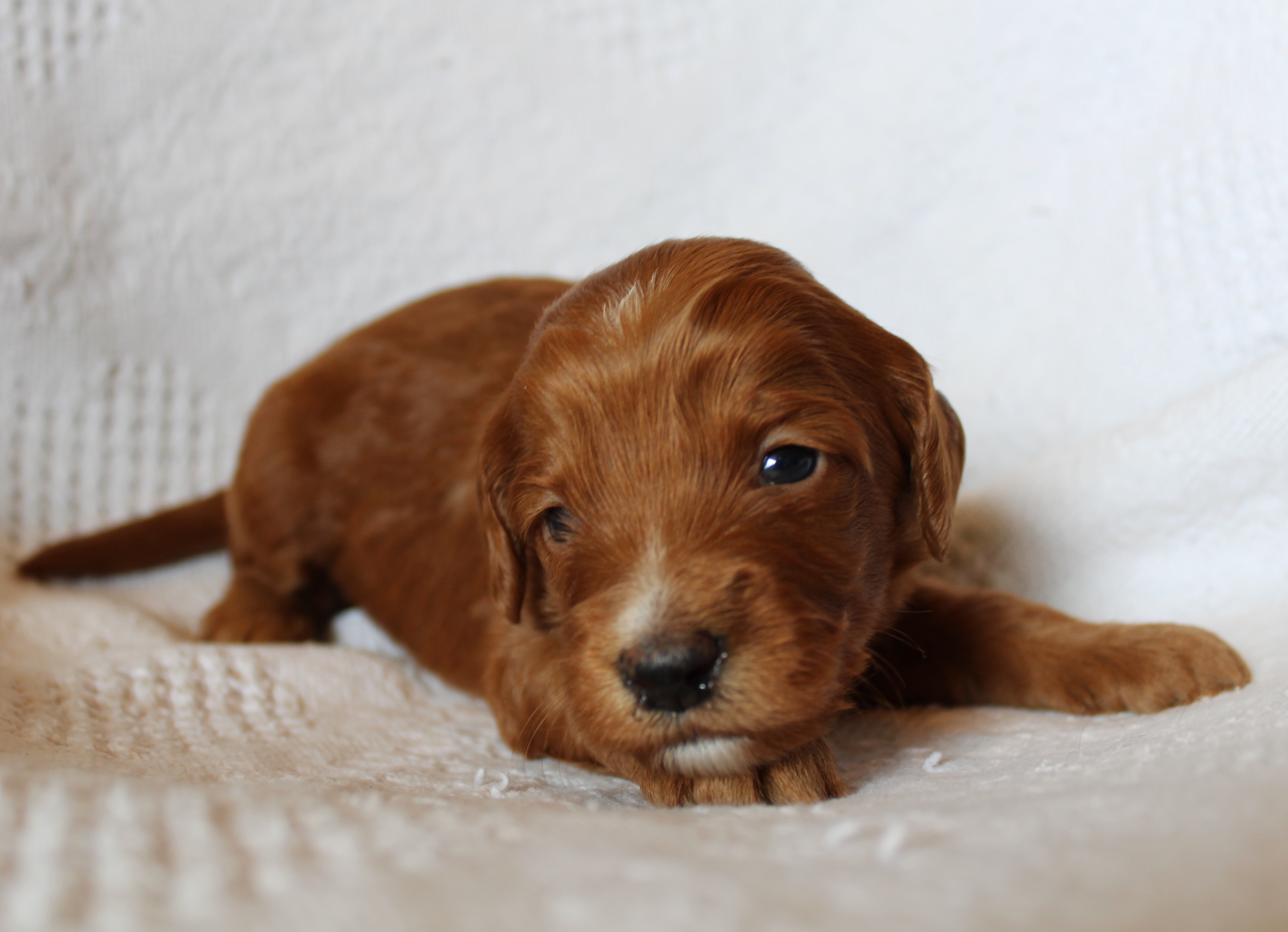 June 12, 2019 – We’re excited to announce that Hazel went into labor around midnight last night and by early this morning, we had ten healthy red and caramel puppies!