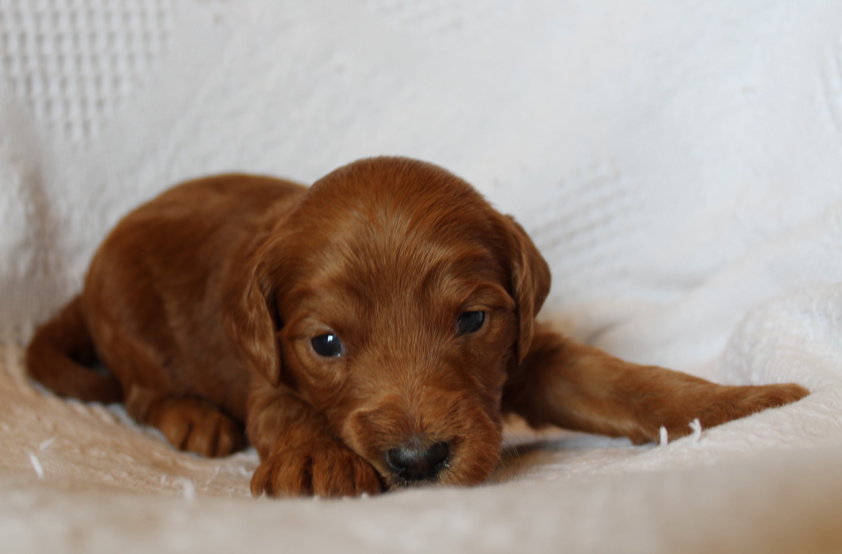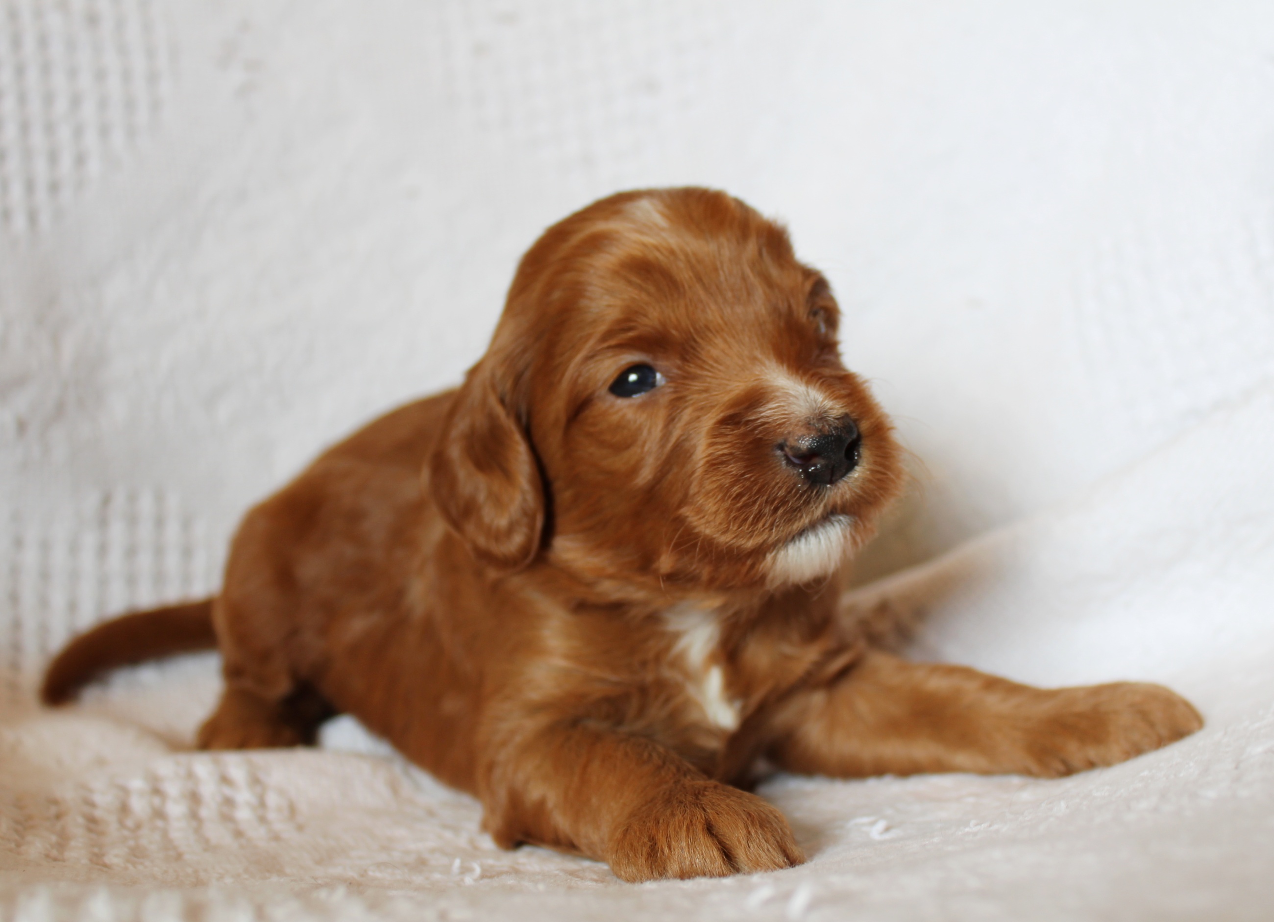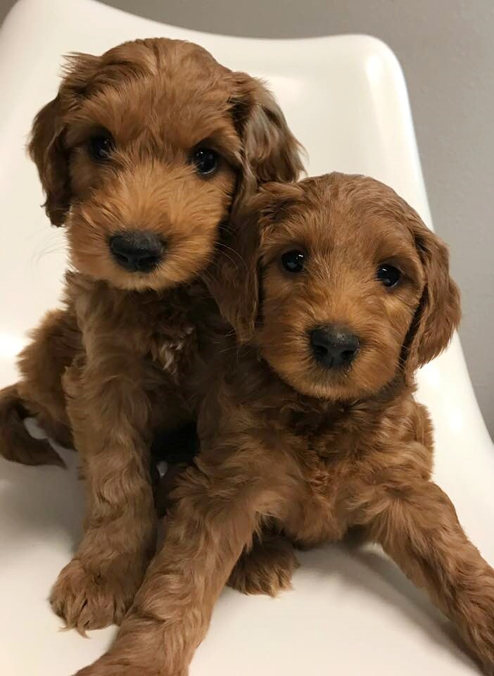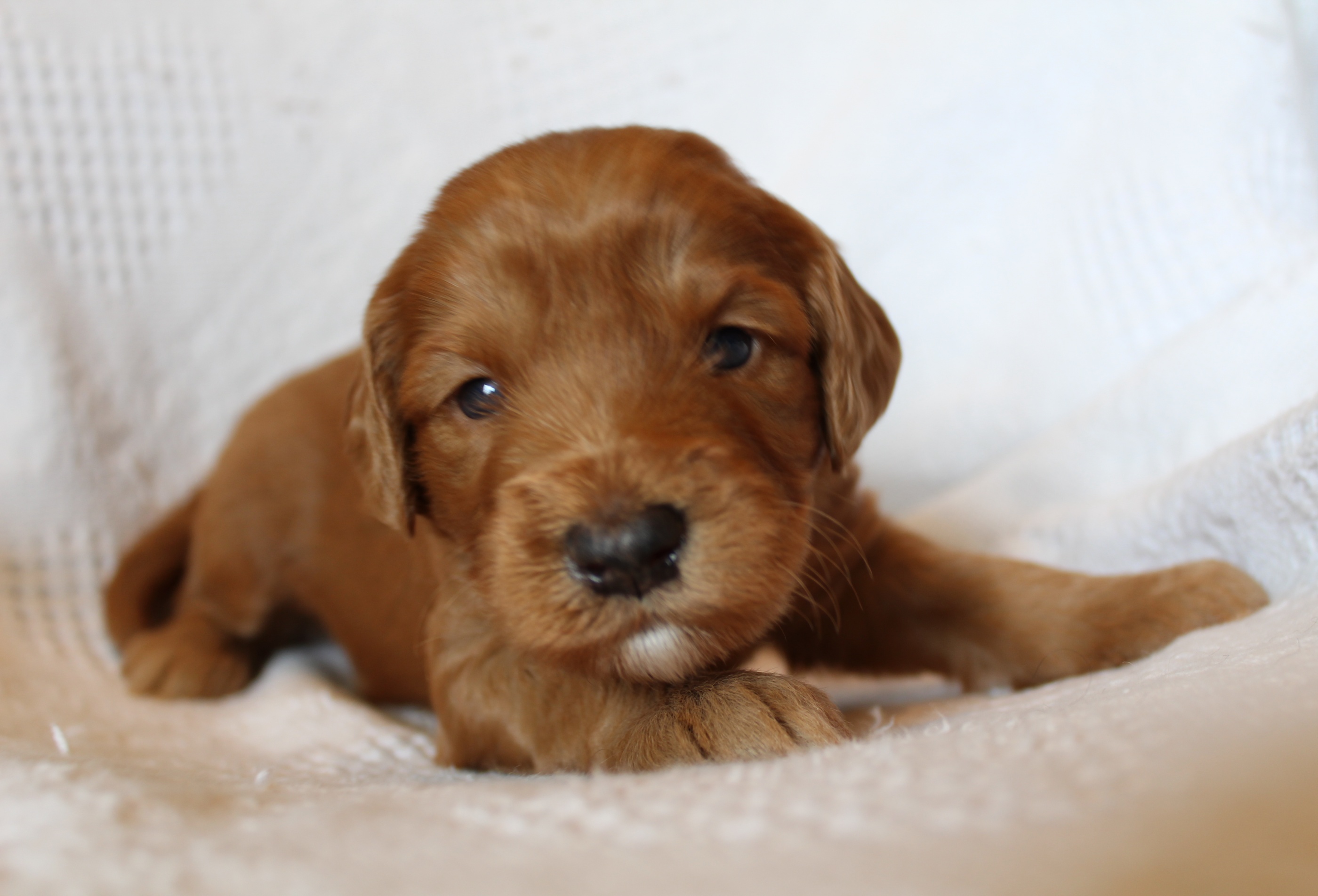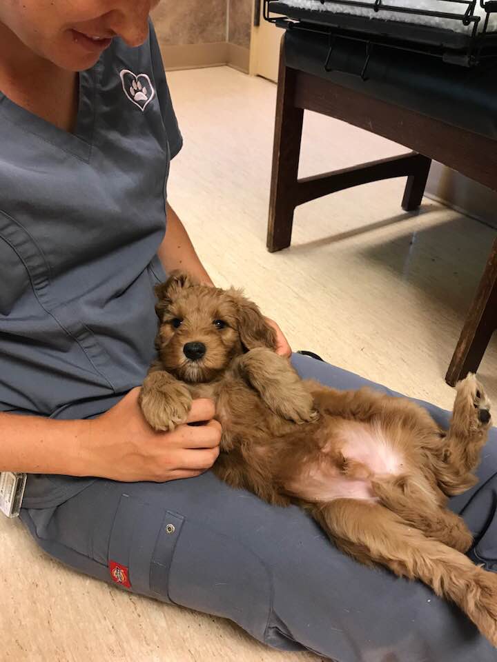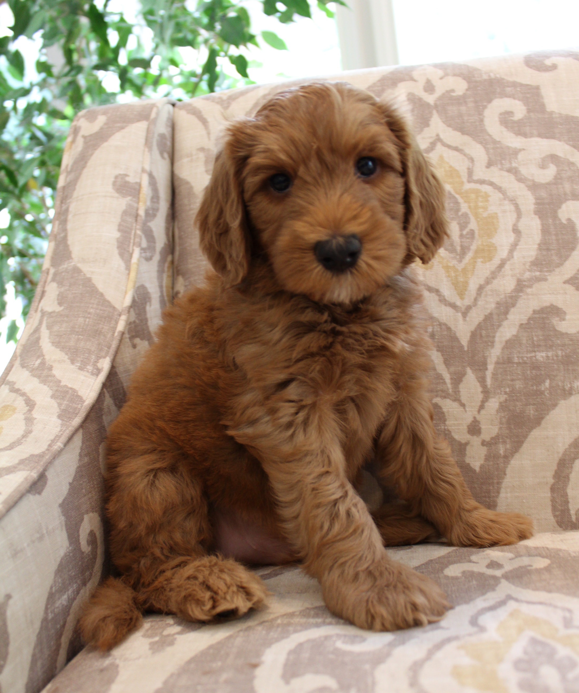 June 12, 2019 – We’re excited to announce that Hazel went into labor around midnight last night and by early this morning, we had ten healthy red and caramel puppies!