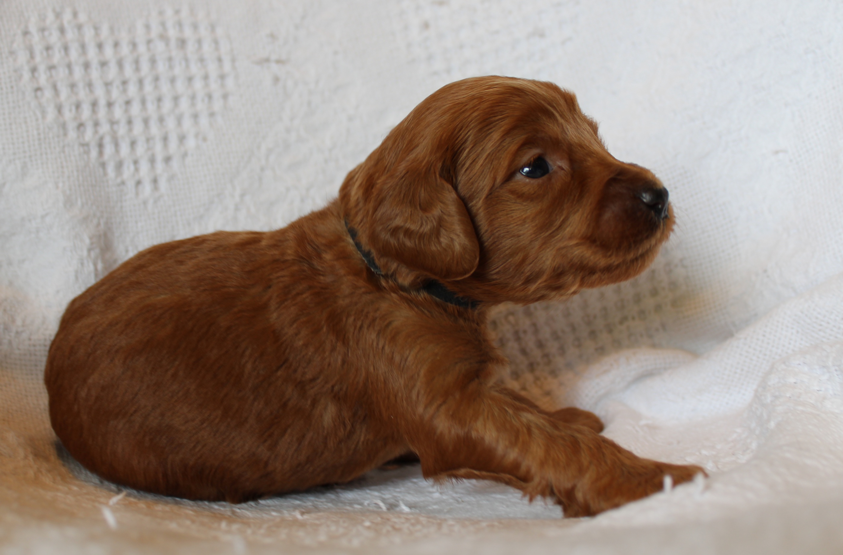 Oh, and one mishap to report. It’s kind of a big one and a first for us here. One of the girls, well, she’s actually not a girl after all. To explain, at this really young age the male parts can look like an umbilical plug. Well, that’s what happened when we examined one of the “girls.” We no longer have a “Holly” in our litter….she’s actually “Hollister” as all parts have now been accurately identified. Sorry for the confusion!
