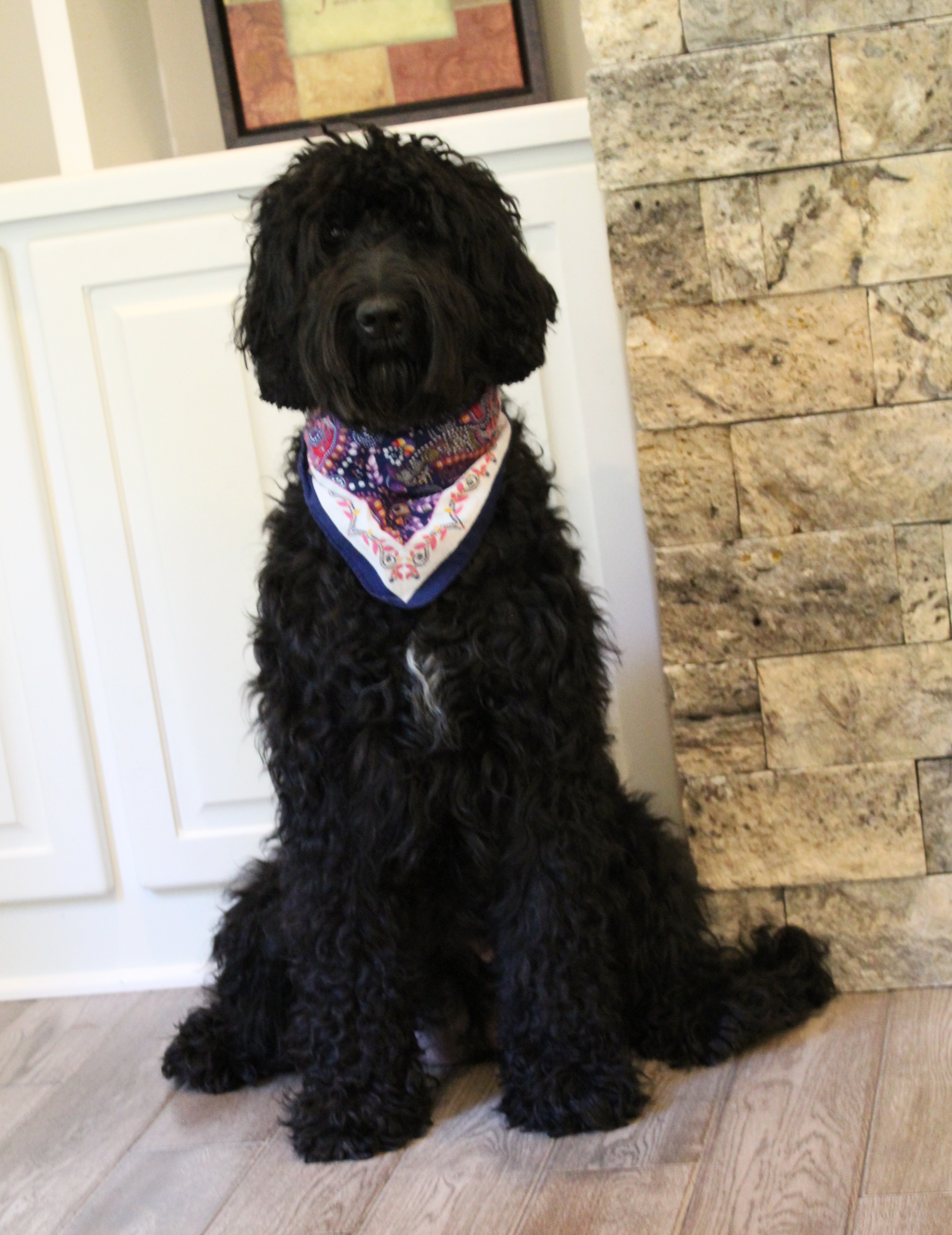 Gracie comes from our wonderful line out of our original and first Australian Labradoodle, Molly. You can see her mama Molly spread across the top of our home page, and Gracie is a complete replica! She is excellent in every way concerning temperament and genetics. Gracie helps us carry on the beautiful silky black, easy-to-care for, fleece coat and produce various colors when matched with the right sire. Gracie is loyal and gentle, and has passed all of her medical and DNA testing to produce excellent puppies. Gracie lives with a wonderful guardian family that loves her very much and she enjoys walks, trips to the beach and lives with a house full of kids that enjoy her for snuggling and playing. She’s patient and loving with a solid temperament. Gracie loves to play, hike, and fetch. But mostly, she’s a snuggler that is pretty content just hanging on the couch. She’s a great family dog that produces outstanding pups. You can check out her last puppies on the Doodle Blog and Doodlemonials page.