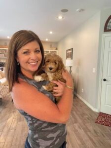 June 7, 2021 – Tomorrow is puppy selection time! We will begin calls at 3 pm. All of the pups had an excellent report at the vet today! All is well and we are on the home stretch for preparing them for their forever families. We’ve posted their official weights from the vet today on each of their pictures below. They are all very close in size and will all be around 22-25 lbs. expected full grown. Jenna is slightly bigger and might be a few pounds bigger than the rest, maybe growing to 28-29 lbs. They all did great on their temperament testing today. We do the testing to make sure we haven’t missed any steps with any of the pups and to make sure they all have solid temperaments. They all scored with numbers of 3-4 which describes them as: