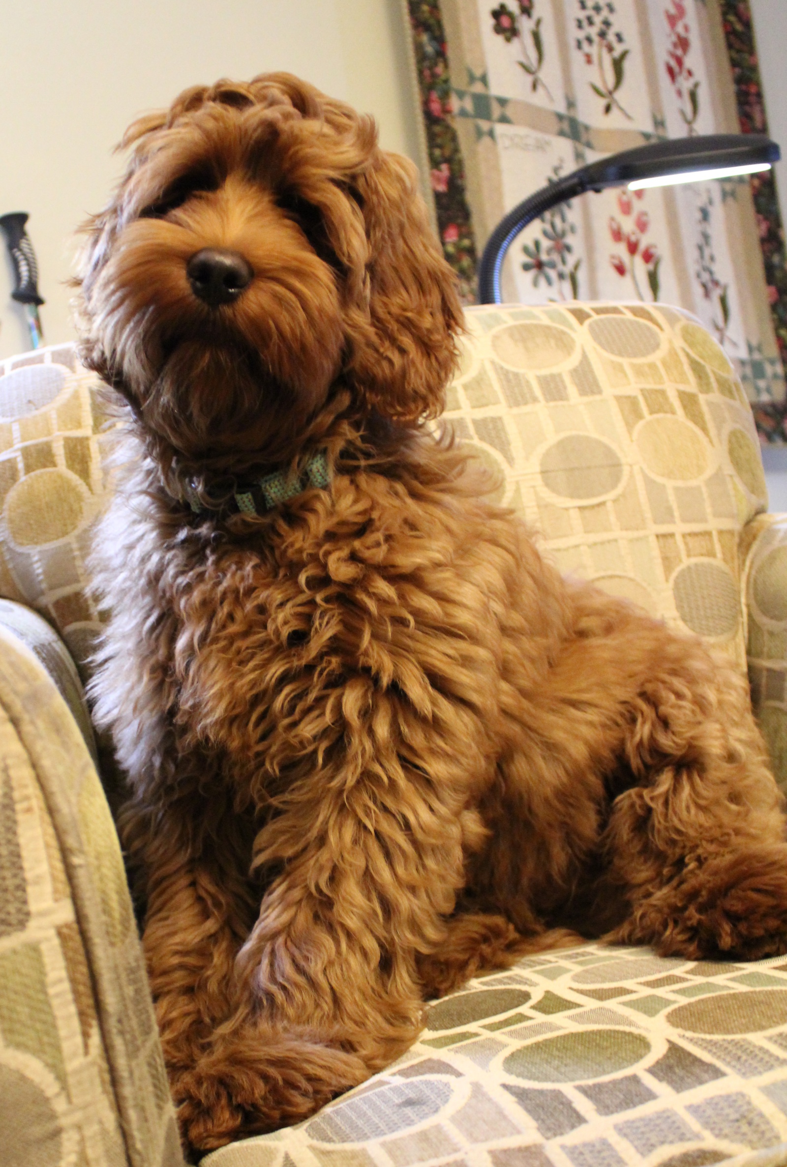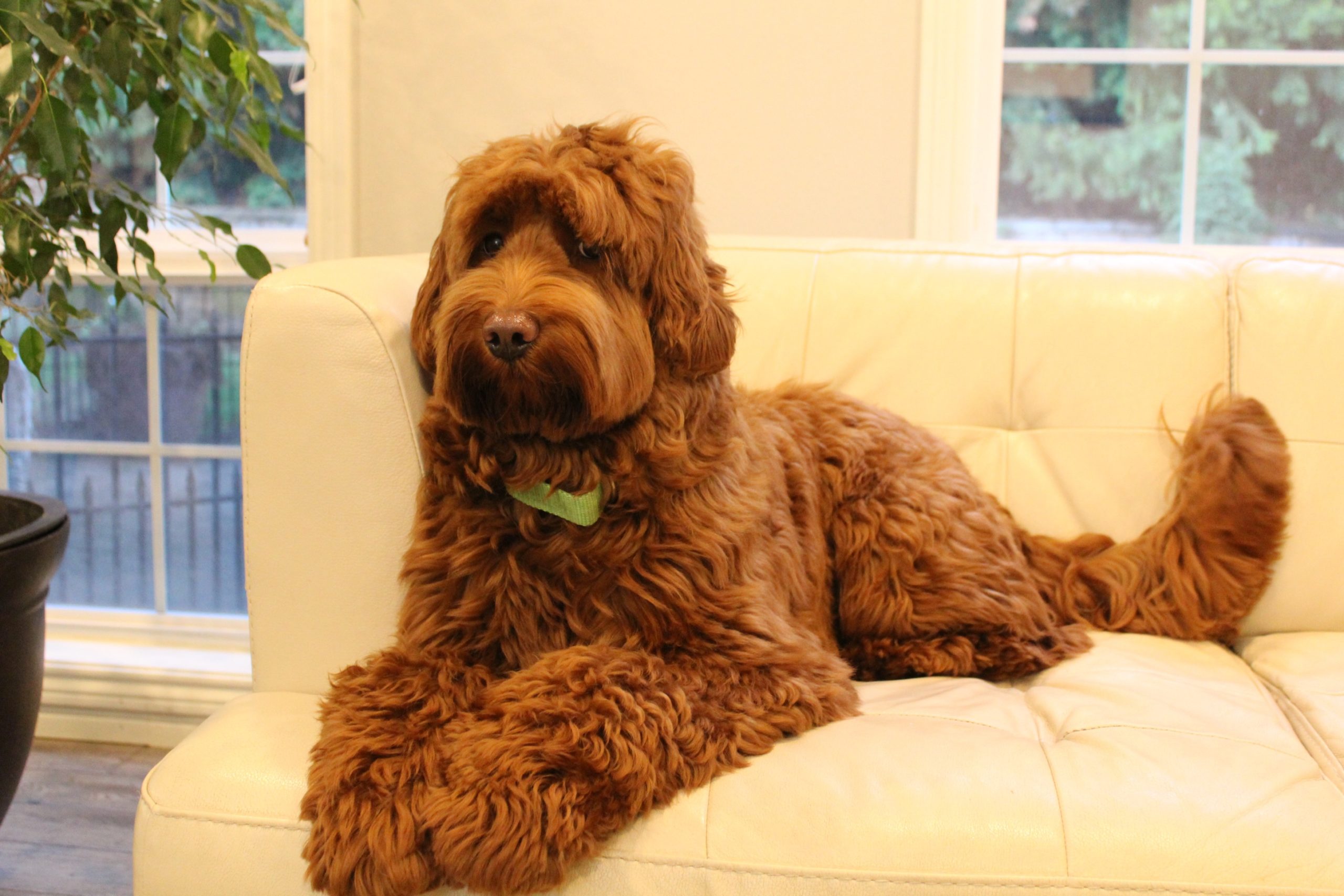 We’re thankful to Cedar Bend Labradoodles in Iowa for this amazing stud that helped bring us beautiful, loving puppies. Barkley lives with his forever guardian Chloe and enjoys lots of walks, snuggles and car rides with his human mama. He stays close by and is a constant companion. He is stunning with his outstanding wavy red coat. He’s now enjoying life without special “dates,” and will spend out his days enjoying the companionship of his human family.