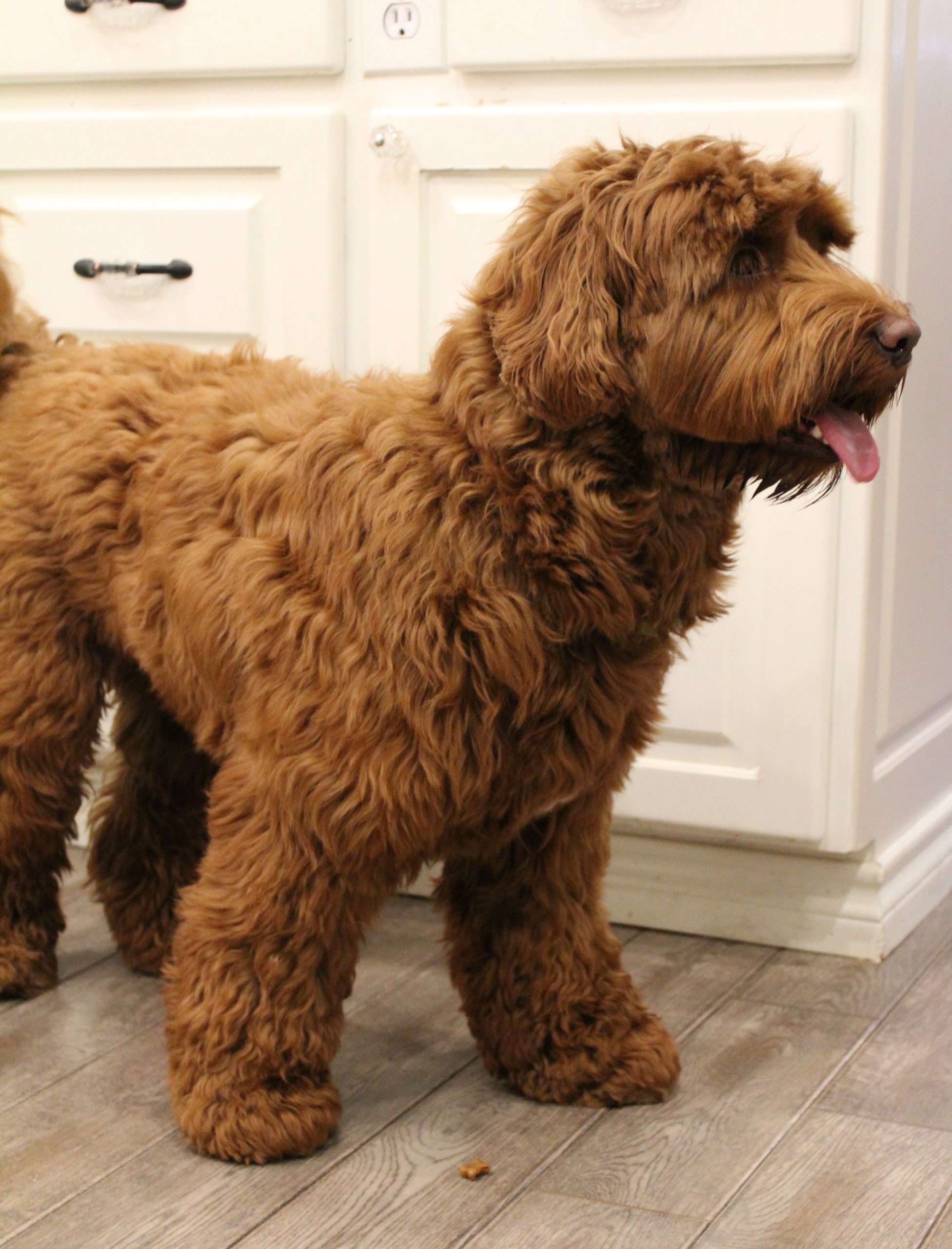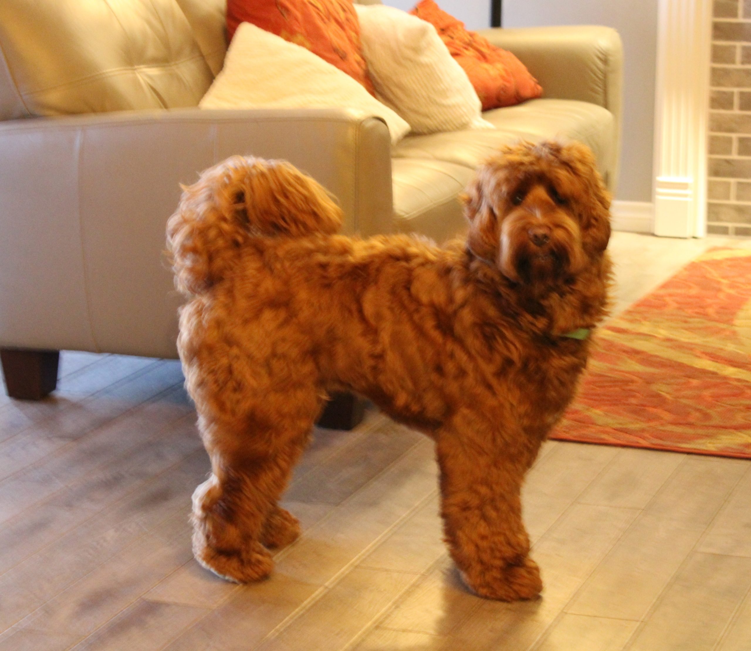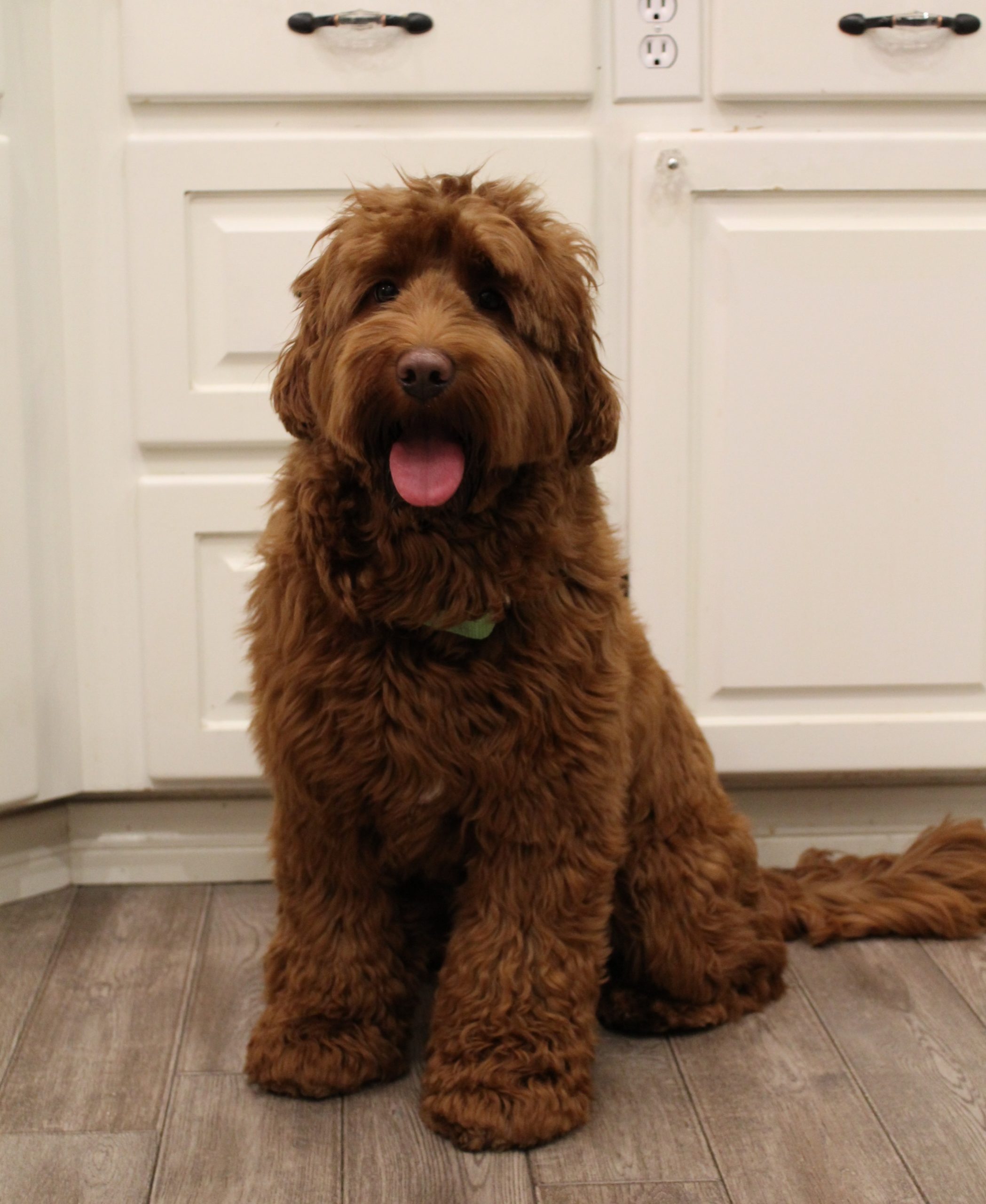 | Variety: Multigen Australian Labradoodle, ALAA-075226 DOB: November 15, 2018 Sire: Labradoodle Corrals Trapper Dam: Cedar Bend Bailey Coat: Wavy Fleece (non-shedding) Color: Red, Bbee Size: Approx. 40 pounds, 17″ tall at the shoulder Health Clearances: Hips-pennhip ..36, Elbows-OFA good, CERF-normal, PRA clear via parentage, vWD Clear, DNA Profiling Complete, IC (Improper Coat) Clear, EIC Clear, Full Disease panel All Clear. |