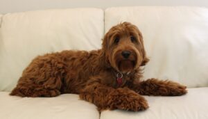 Rosie has retired and is the daughter of our retired, standard size girl Hazel.  We wanted to carry on Hazel’s wonderful temperament and sound genetics, so we held back her pup Rosie to carry on Hazel’s legacy of great pups. Rosie brings us the dominant red gene that she was passed down from her papa, Barkley. Rosie has passed all of her testing and is ready to become part of our program. Rosie is very affectionate, sweet, loyal, quiet and loving. She is gentle and always stays close by. She is very attentive to her humans, watching and tracking them, making her an excellent service or therapy dog. Her offspring will do the same!  We love this dog and so does her forever guardian family, our friends, that love and care for her for life. Here she is, sweet Rosie!