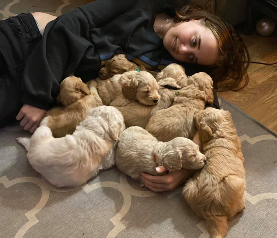 Roo is happy and quiet, loves her family (especially her human papa!) and has an extremely gentle temperament. She loves hugs and staying close. She’s just an easy-going, content dog in every way! Not sure we’ve ever heard her bark. No doubt, her puppies match her amazing temperament and great genetics. She’s got excellent stature and bone structure and almost looks majestic as she carries herself. She brings us apricot, caramel and cream pups. Valley Vineyard’s Roo has retired but her legacy carries on through our other mamas.