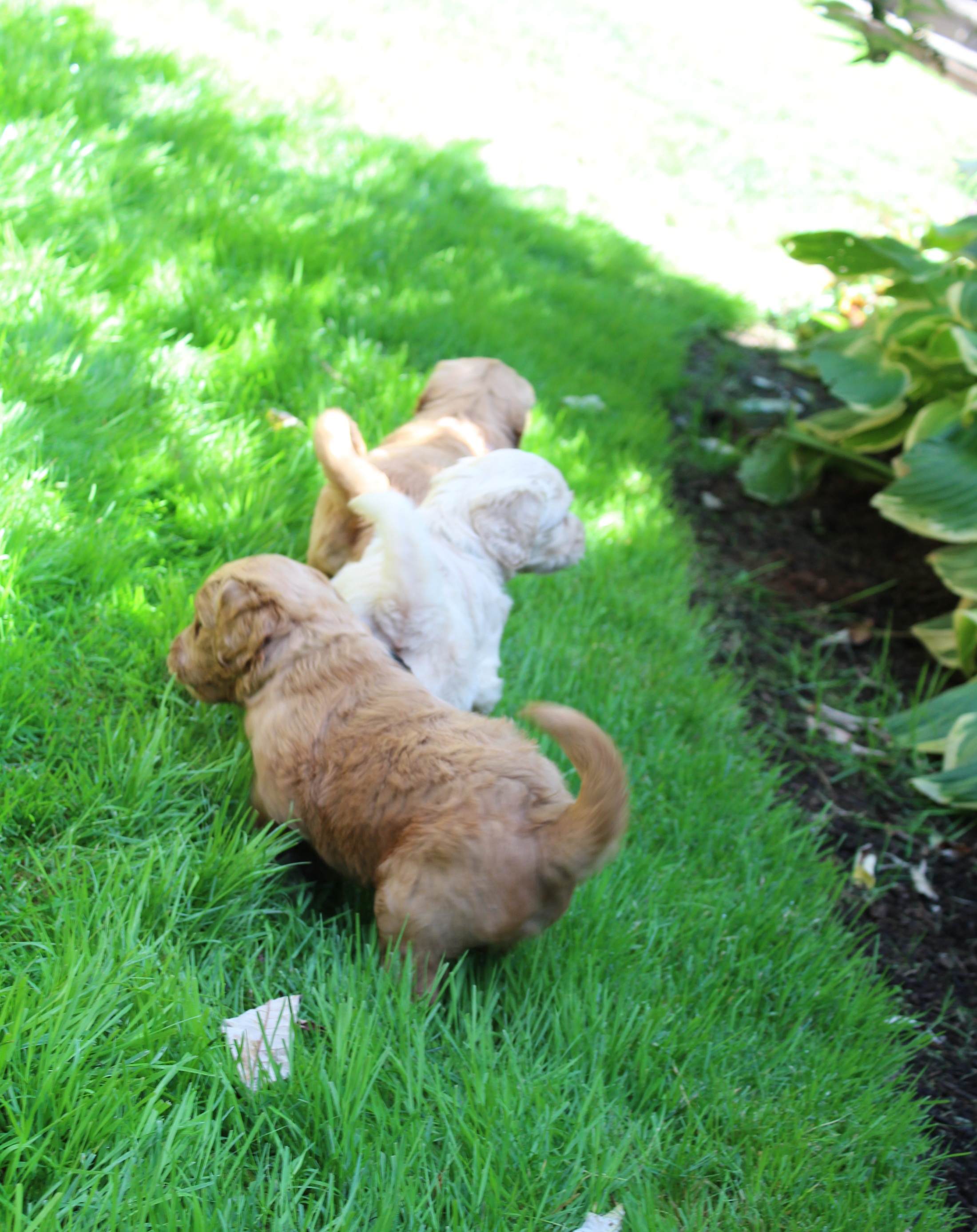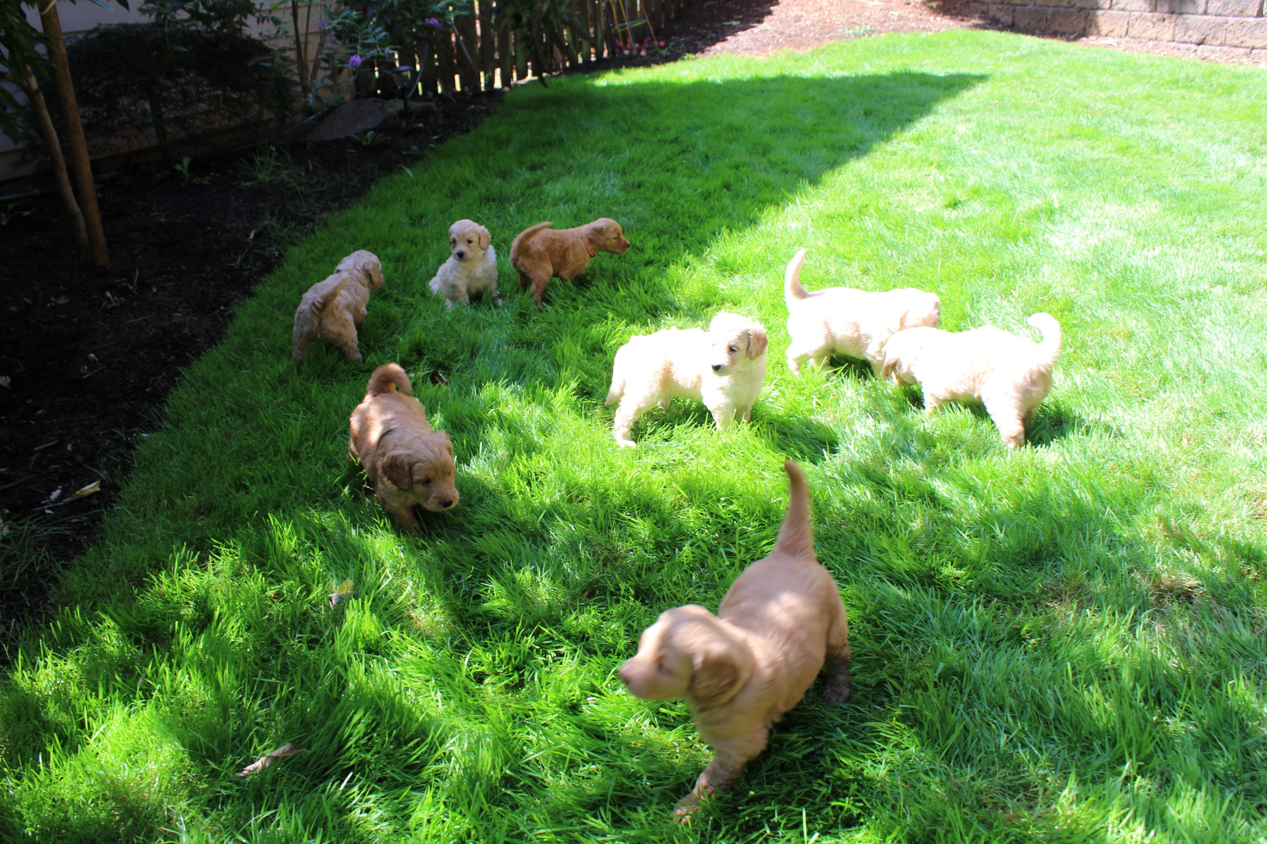 August 26, 2019 – Winnie’s puppies are five weeks old! We’ve had a busy week with outings to the backyard, baths, lots of socialization and conditioning with new people, new sounds and experiences, and are weaning more and more from mama. The pups really don’t react anymore to scary sounds like thunderstorms, fireworks, sirens, loud dogs barking, babies crying, hammering, vacuums and more. They’re becoming so confident! Here they are at five weeks old!