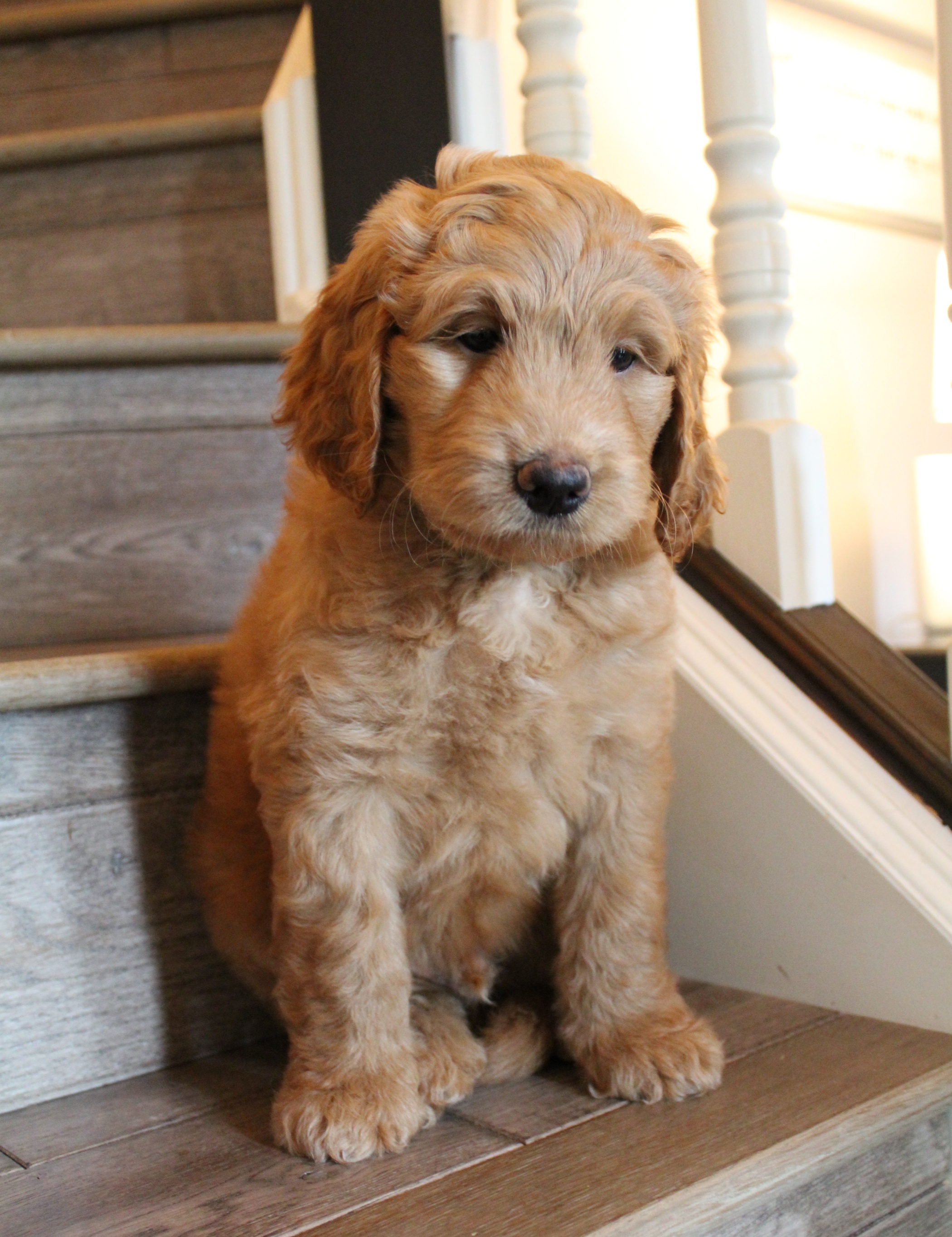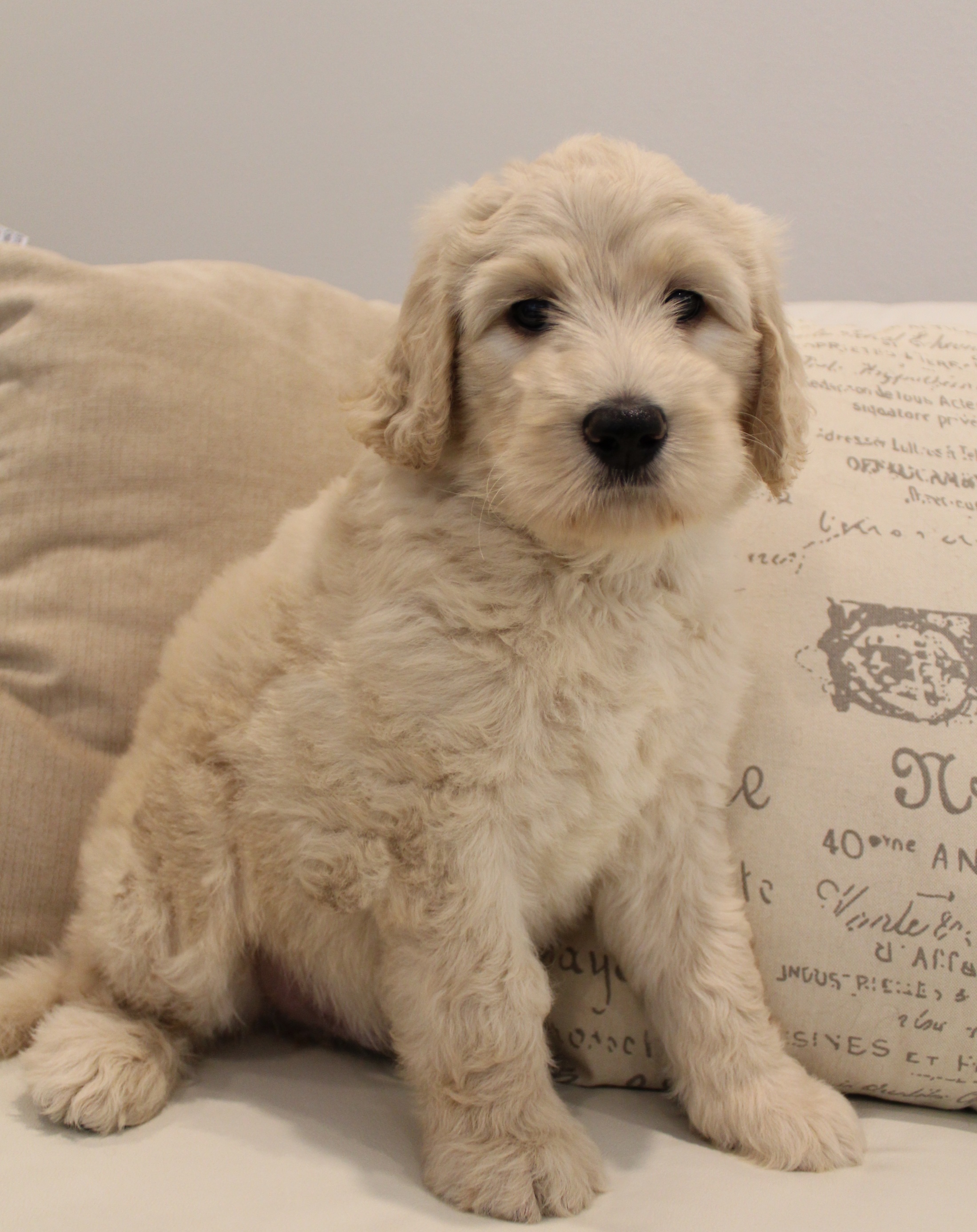 Everyone comments on how quiet this entire litter is. They are comfortable in any stranger’s arms and love greeting humans they don’t know. All have been very socialized and we hope their families continue with this! Regarding intelligence, these pups track us and watch closely and figure things out. (We have NEVER seen a labradoodle that isn’t incredibly smart. No worries there for sure!)