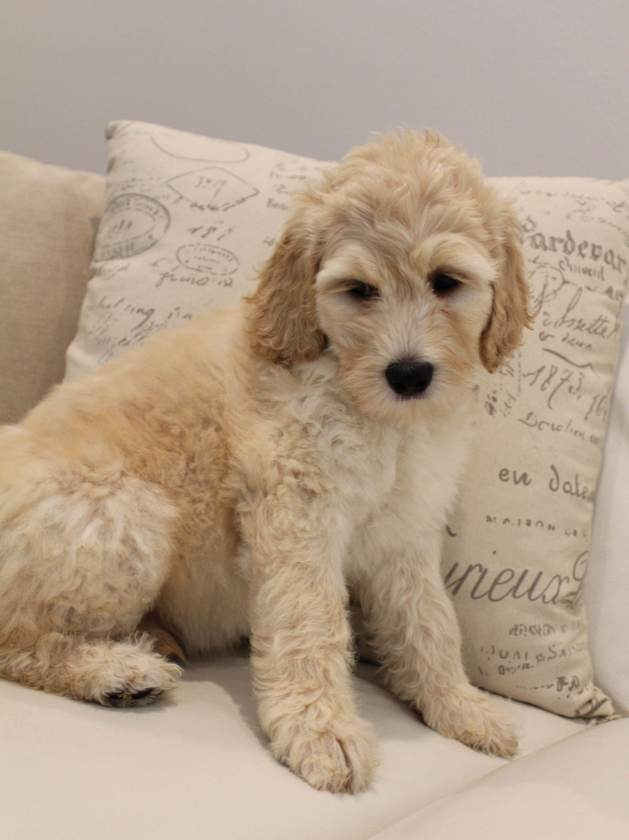 Wendy and Weston each have teeth that are not fully in straight yet (called Baseline Narrow), very minor and we’ve never seen it not self-correct as teeth develop. This is not an overbite or underbite, just teeth still developing in these young pups. Our vet has worked with labradoodles for 30+ years and has never seen a baseline narrow not self- correct with this breed. (Our warranty covers teeth issues, but baseline narrow is never something that we’ve have ever had to deal with because always corrects on it’s own as teeth develop. )