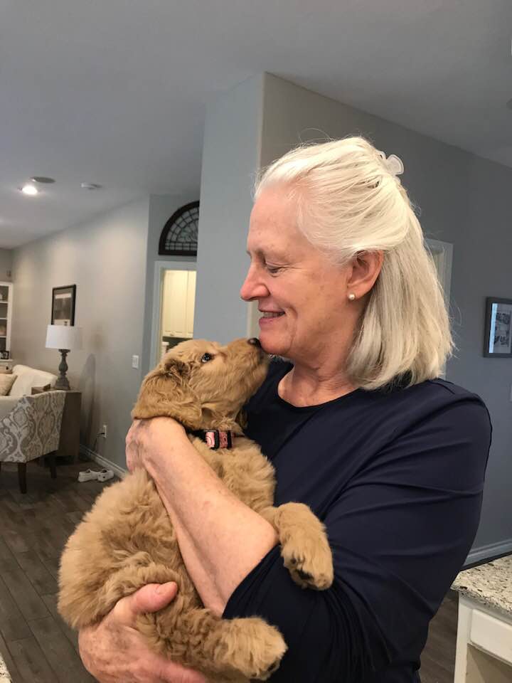 All of the pups love being held and they relax easily while sitting in somebody’s lap. We have different family and friends coming to help us work with them seven days (and evenings!) a week. They get so much attention, and it shows. We’re so pleased with them!