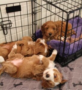 September 30, 2024 – We were so late in updating this page!  The pups all left a couple of weeks ago and are living their happy-ever-after story with their loving families. We are hearing good reports all around!  All of the pups went home to wonderful families.  At least a couple of the pups will be used for therapy work. This makes us so happy! Because of this litter, and the families that chose us, we were able to donate $1,800.00 to help victims of Hurricane Helene.  So, we switched gears a bit this time, and chose to send our litter donation to help fellow citizens that are in crisis. Thank you to all the families!  We loved this litter so much, and plan on repeating this breeding with Ally and Oakley again.  This was Oakley’s first litter, and he did great! Here’s just one of the reports we received so far, regarding “Asher.”