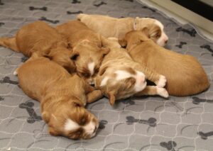 A cute batch of sleeping labradoodle puppies