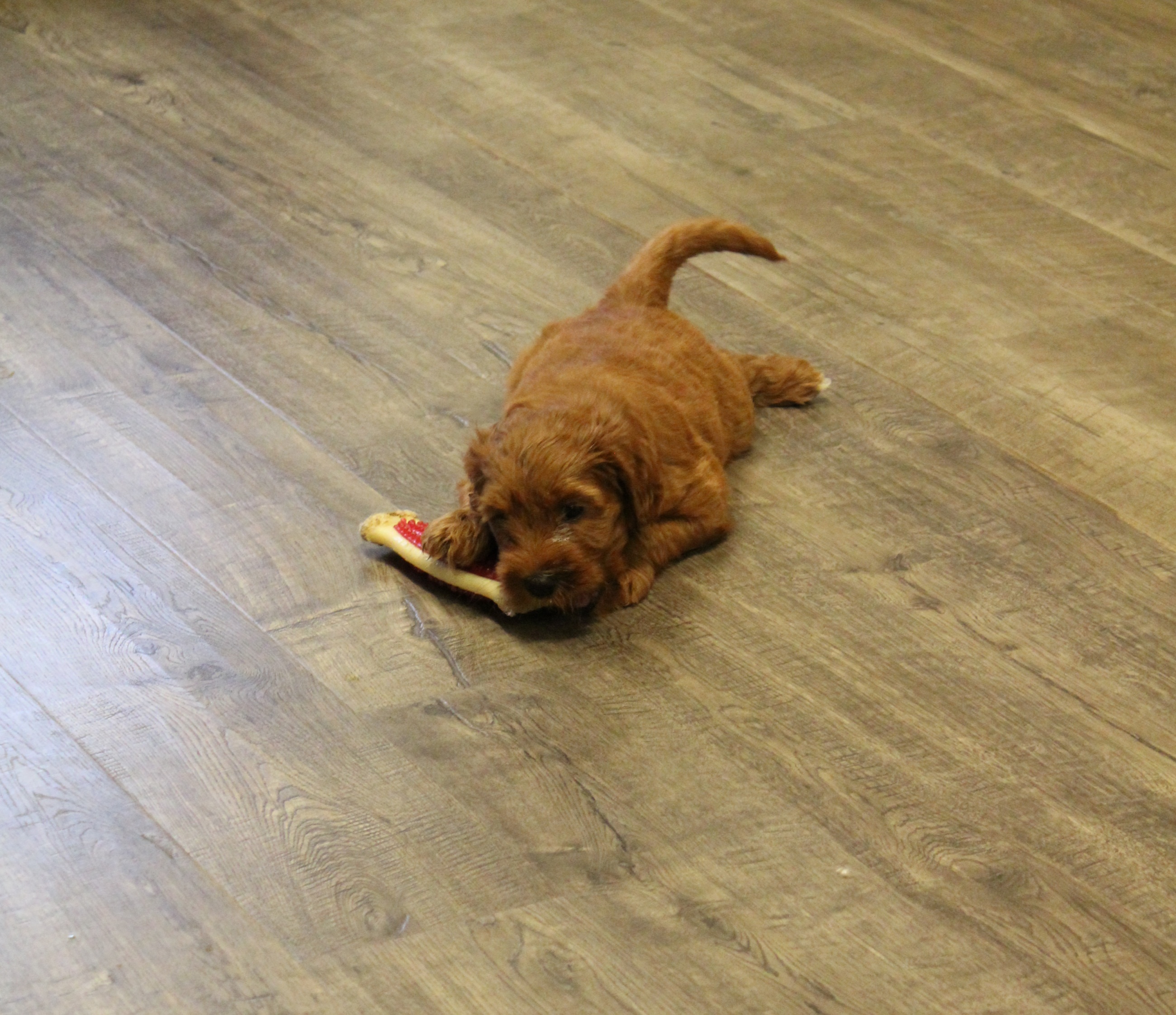 Suddenly they are very interested in bones and chew toys. This feels good and will help their teeth not to be so sharp.