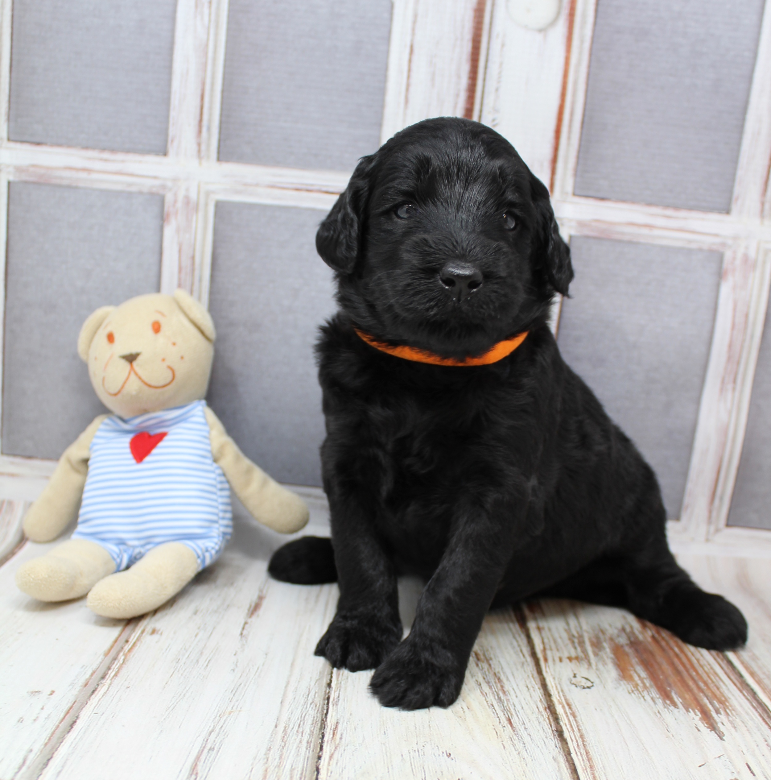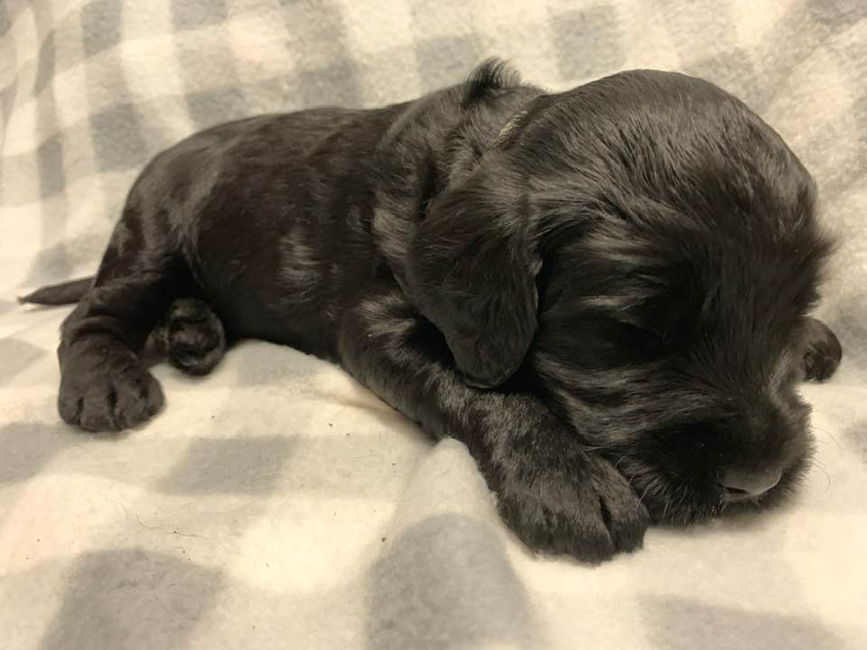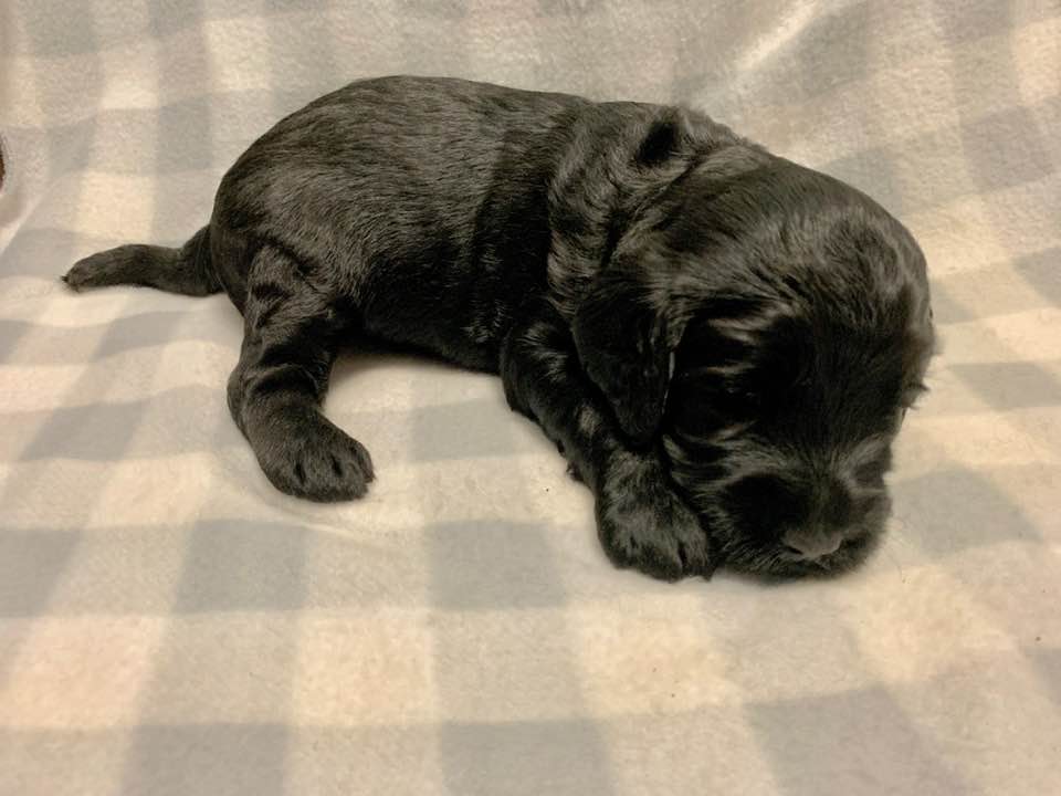 Charger is super confident. He was the largest pup and perhaps alpha because of it in the early weeks. He loves to wrestle and play but also melts in your arms (like the rest) when he is picked up.