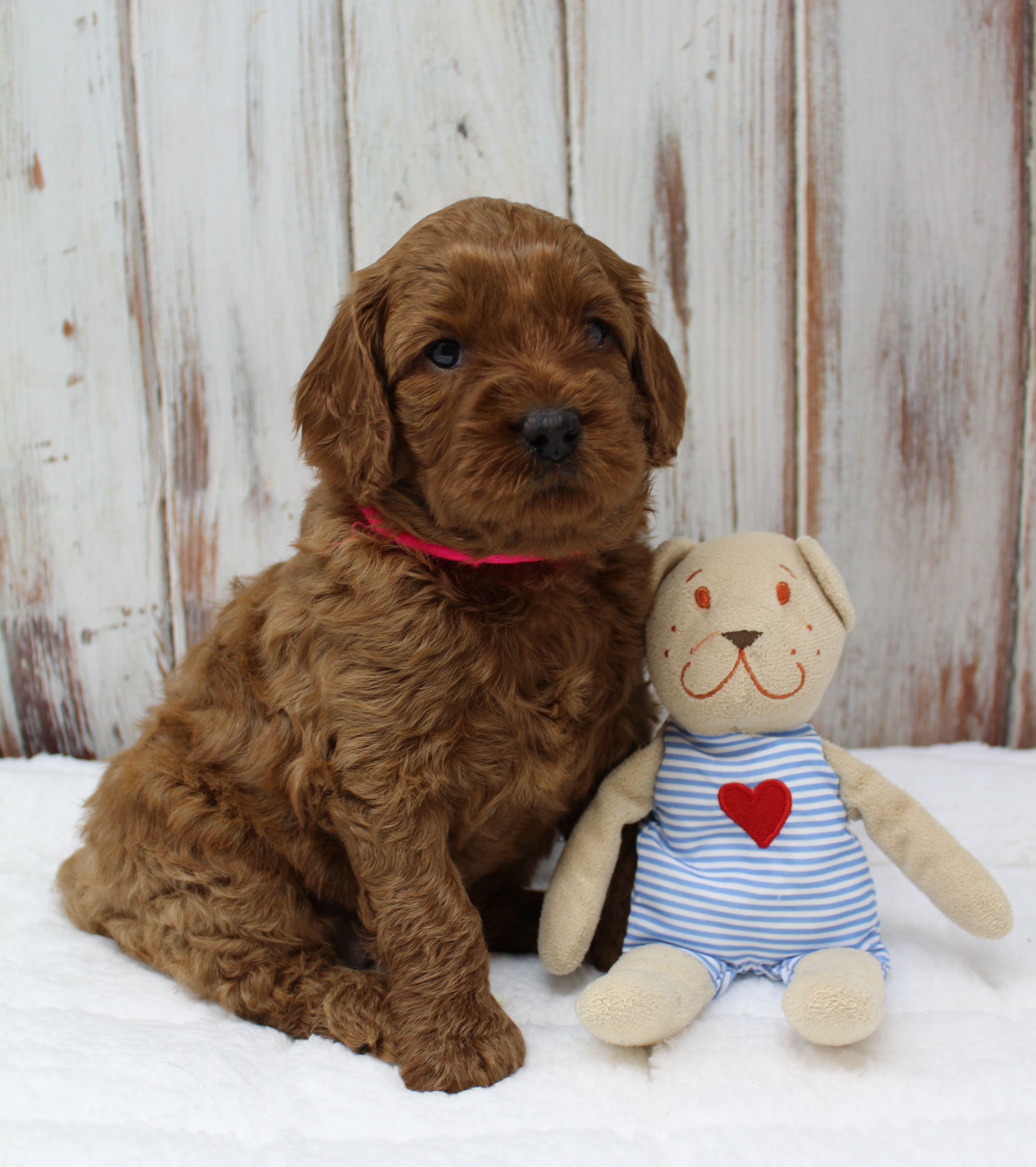 None of the pups are timid with humans, all show to be really social and affectionate, all LOVE to be picked up and held for long periods. All are settling down easily in a crate and all are loving their leash time. None of the pups are distant or aloof – they track their humans (a good sign of a therapy dog.)No longer afraid of the leash and refusing to walk. (Ha, ha, for those of you that haven’t had a pup before, that’s how leash training starts!) EVERY PUP IS READY TO GO HOME TO HAVE A SUCCESSFUL LIFE WITH THEIR HUMANS. Please keep up the positive reinforcements, the crate training and lots of human interaction to lead them into becoming an amazing dog for life.