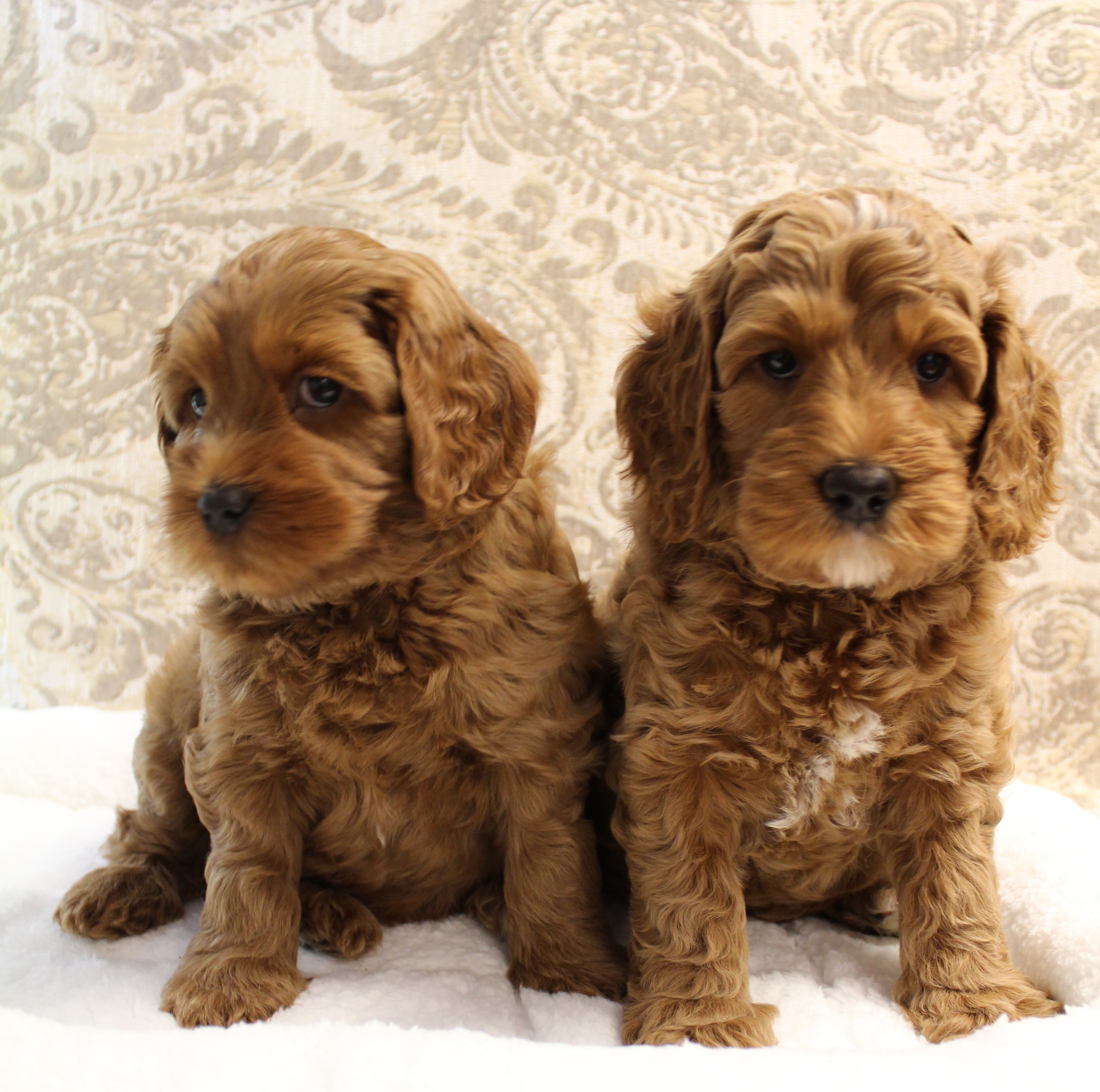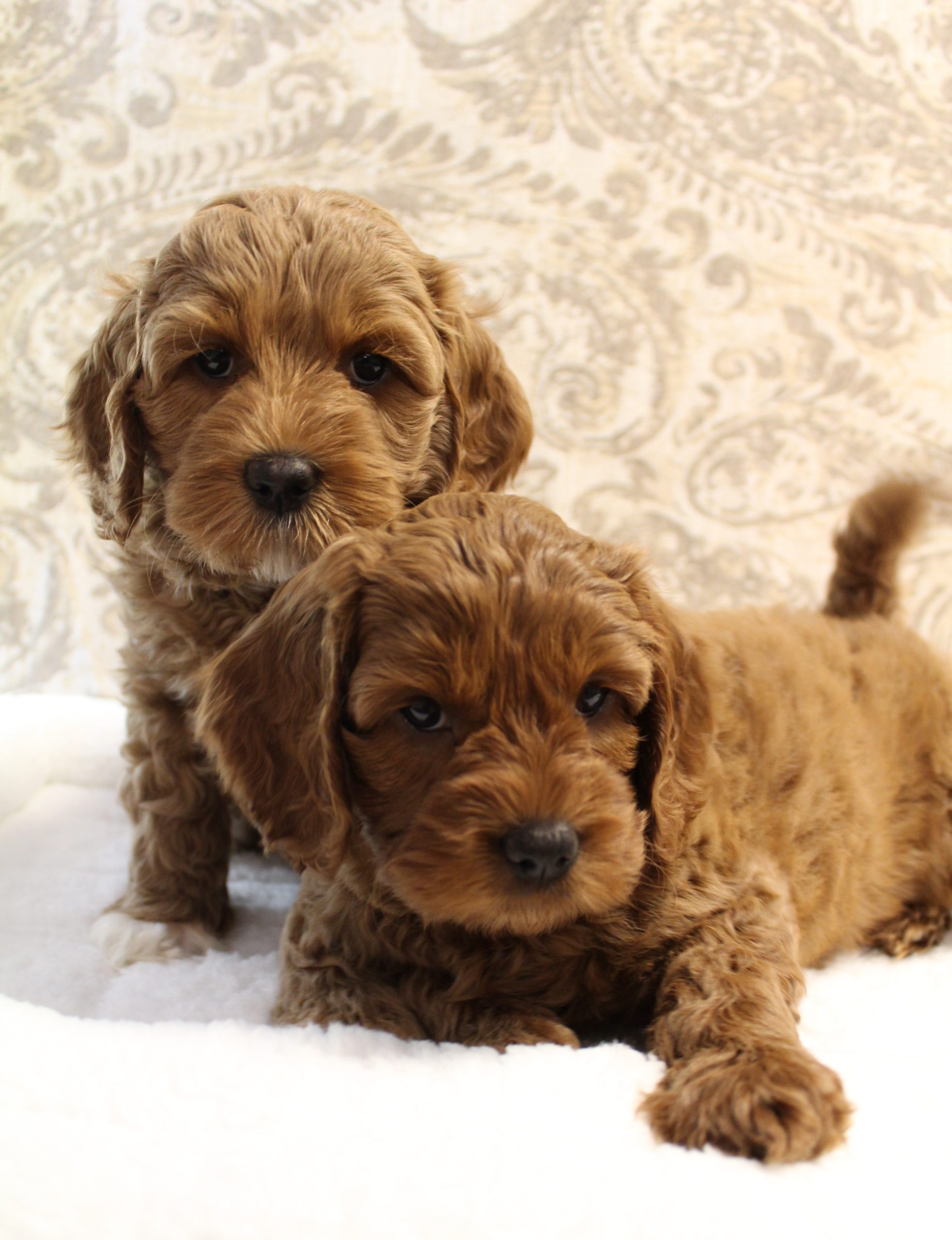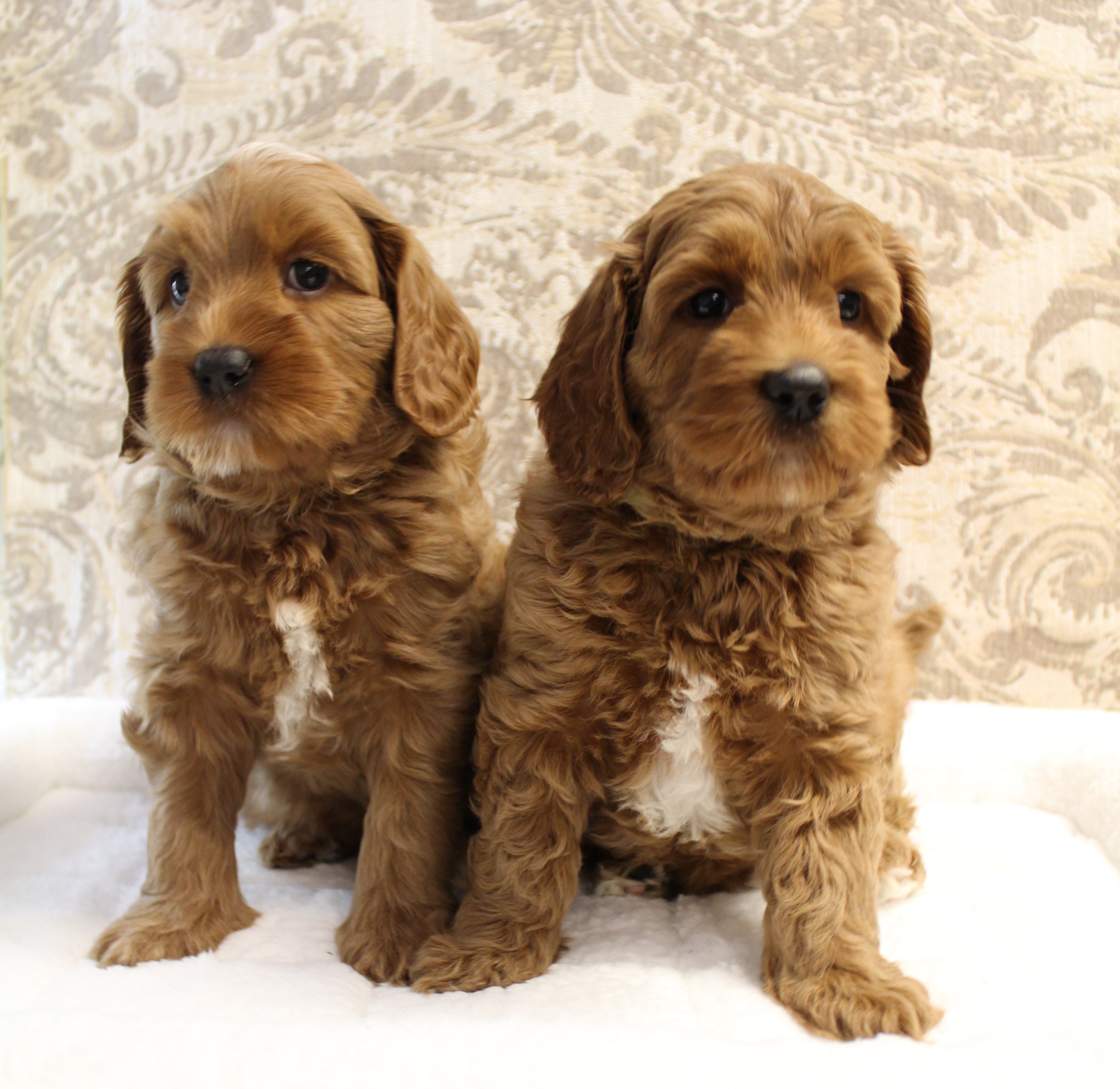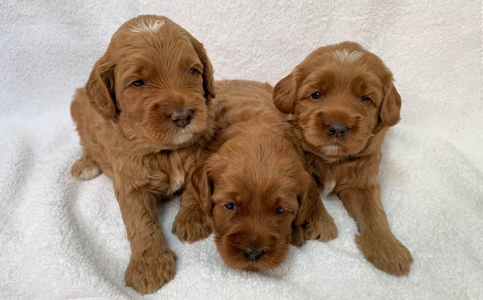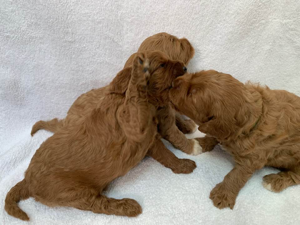 April 26, 2020 – This week, we have been working on crate training and small periods of alone time away from the pack. We don’t give in to crying in the crate, and each day they’re adjusting more and more. They’re eating well and building confidence. They are learning “manding” which means they must sit for attention in being pet or picked up. They are doing very well. Here they are after baths and blow drying – more important conditioning that they are already used to. We love each of them!