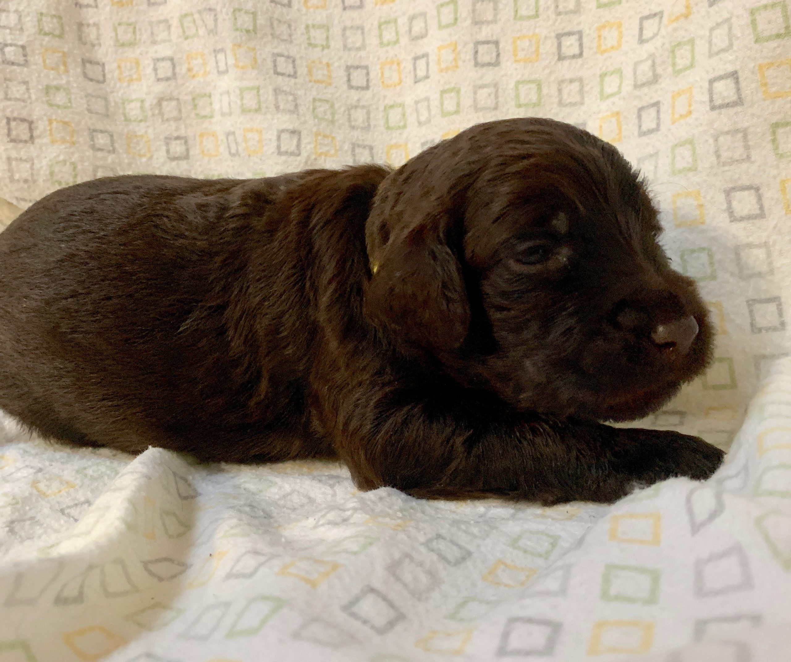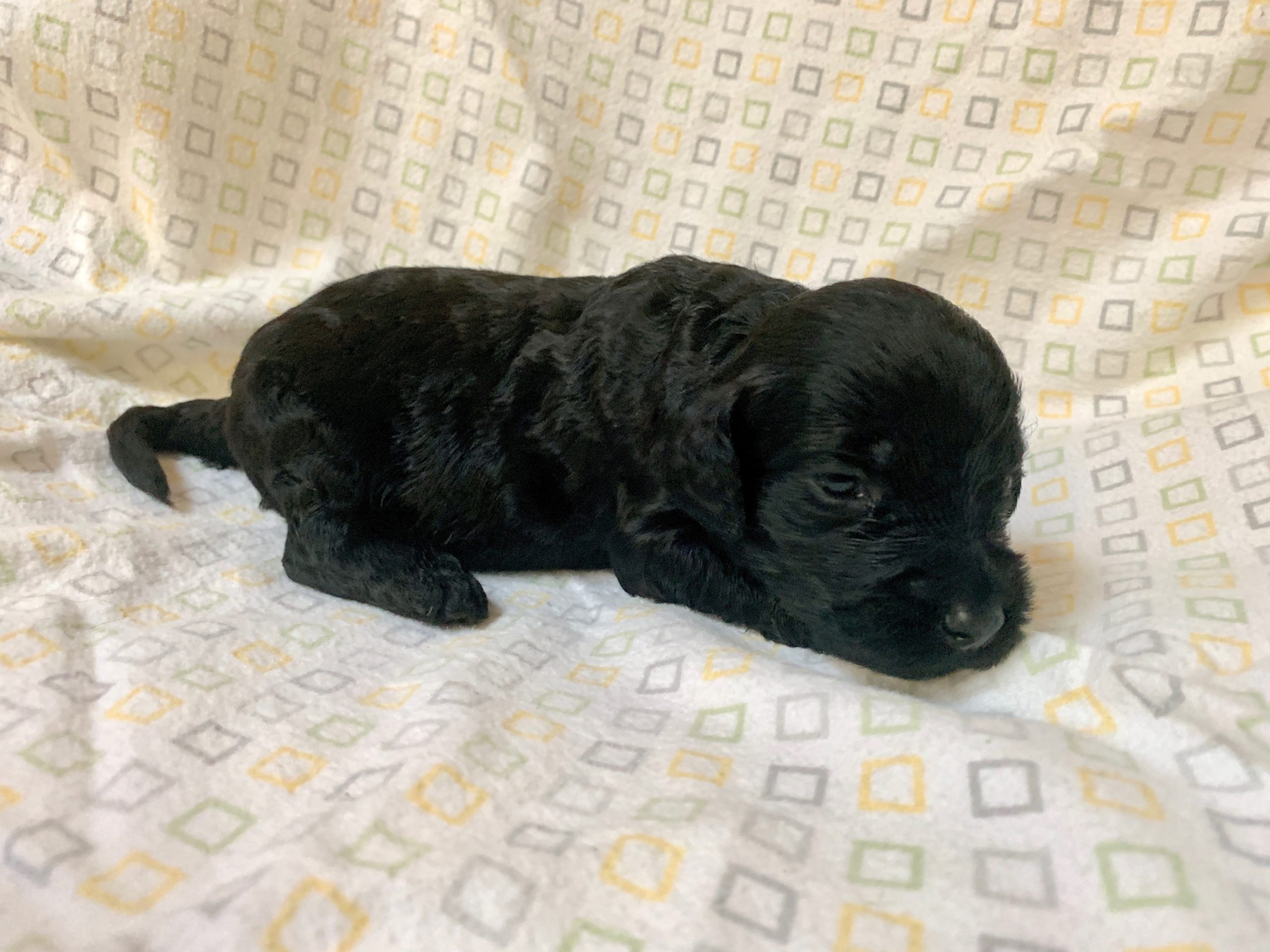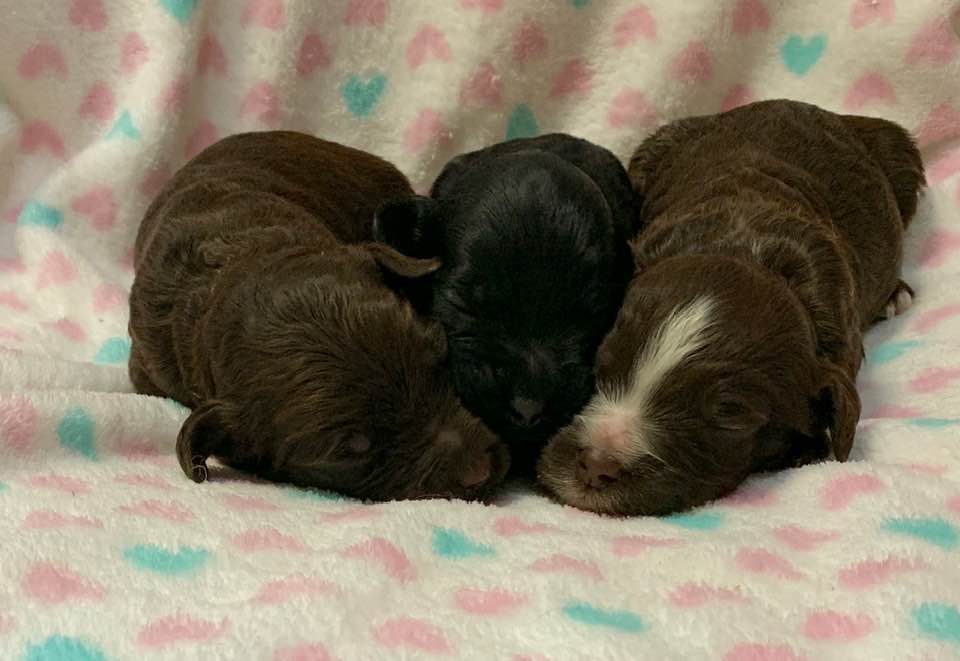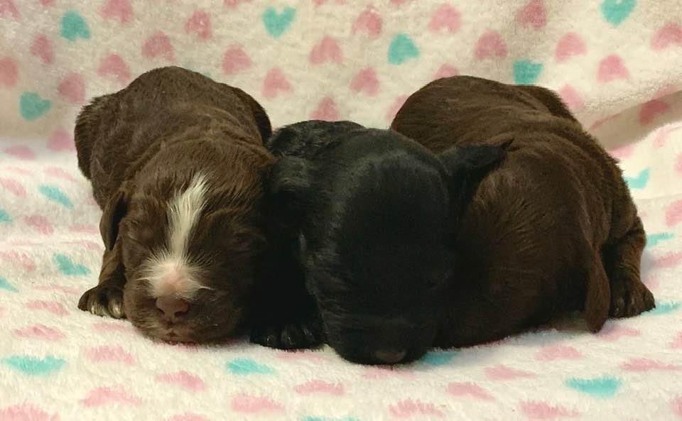 May 11, 2020 – Our first puppy arrived yesterday afternoon, and as of this morning, we have cream, black and chocolate puppies: seven girls and three boys. They are eating well and mama is doing great. We’ll be updating this post with pictures and updates weekly, with individual pictures of the puppies starting at three, five and seven weeks old. Once the pups become active, at around four weeks old, we’ll post some video of them on Instagram and Facebook to help you to be able to watch them grow.