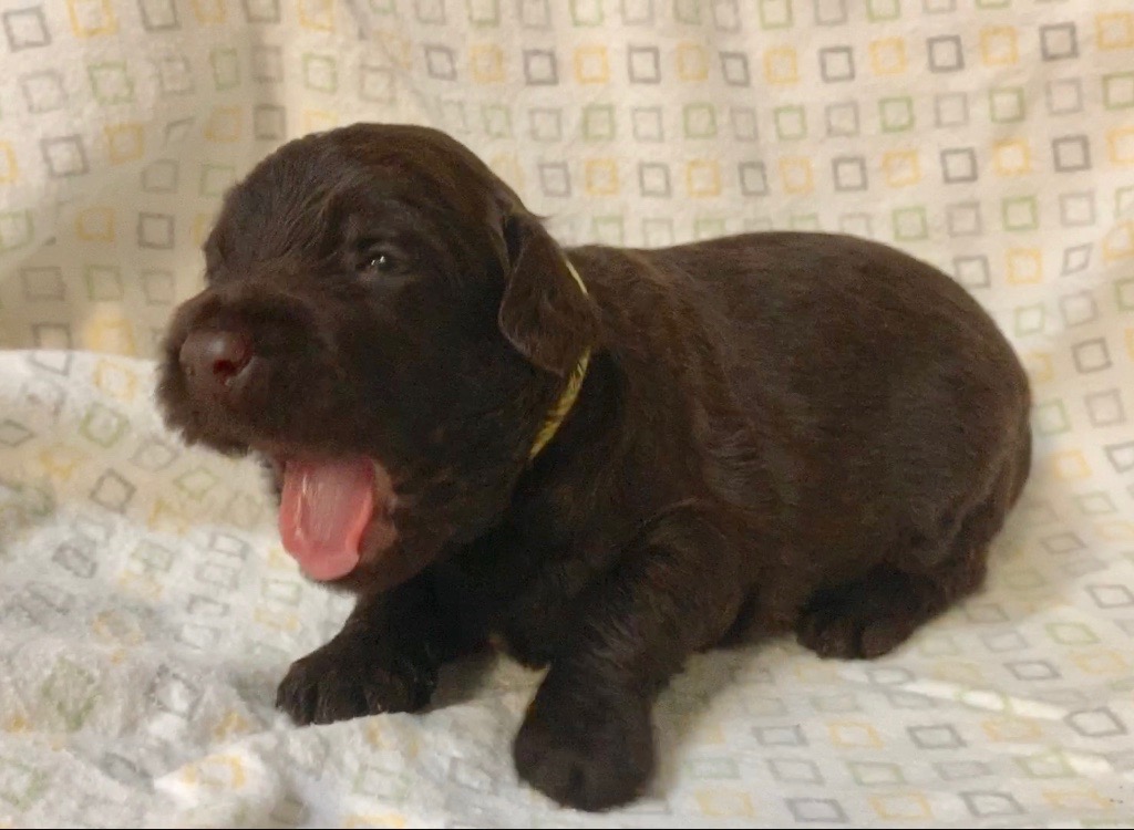 June 24, 2020 – Thought it would be helpful to post collar colors/names for those of you trying to identify pups on the videos we post. A couple of the cream pups and the chocolate pups too, are so hard for us to tell apart. No doubt you can’t tell in videos. The videos are mostly for you to see what’s happening here with your pup, but go ahead and try and guess who’s who. 🙂