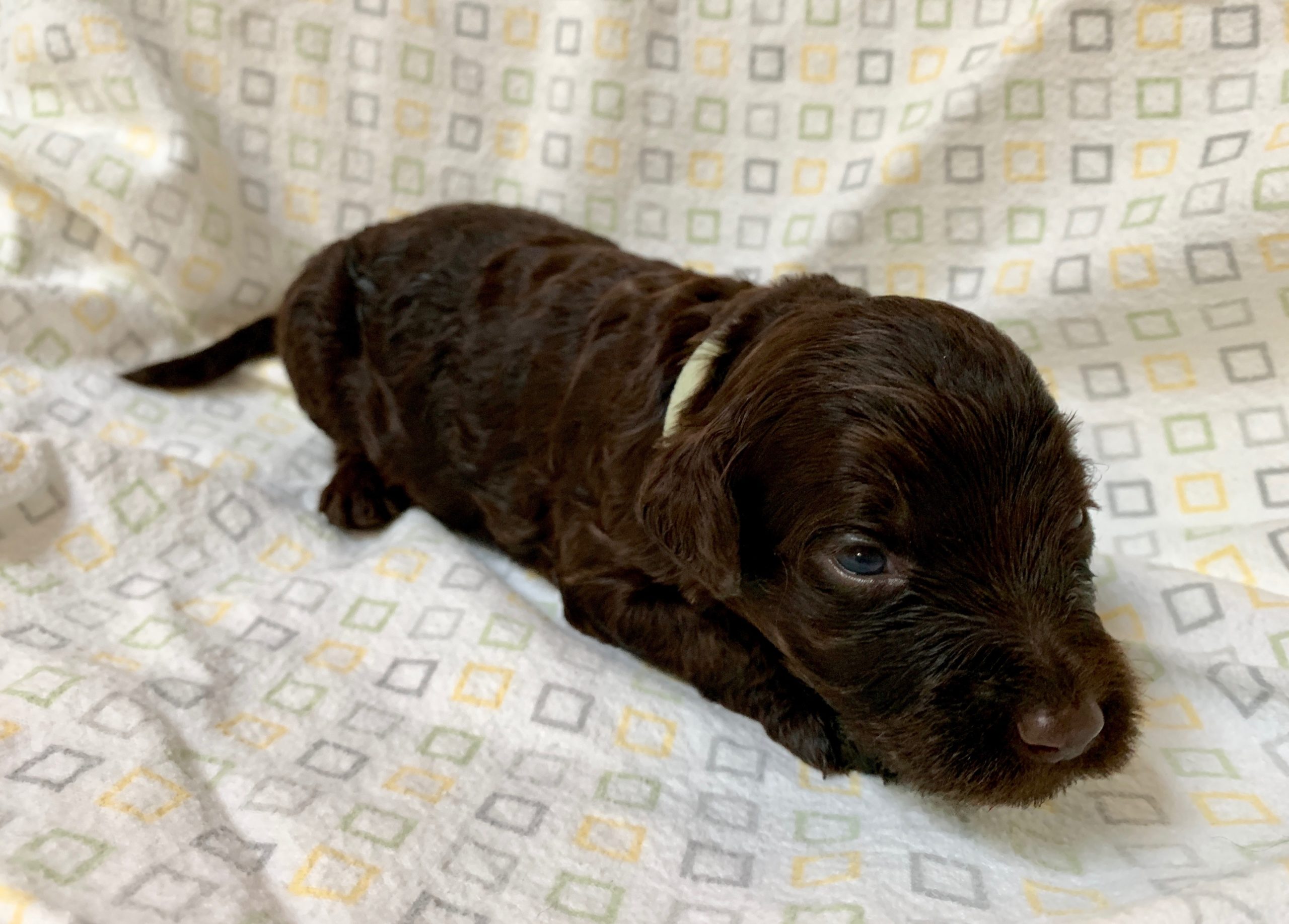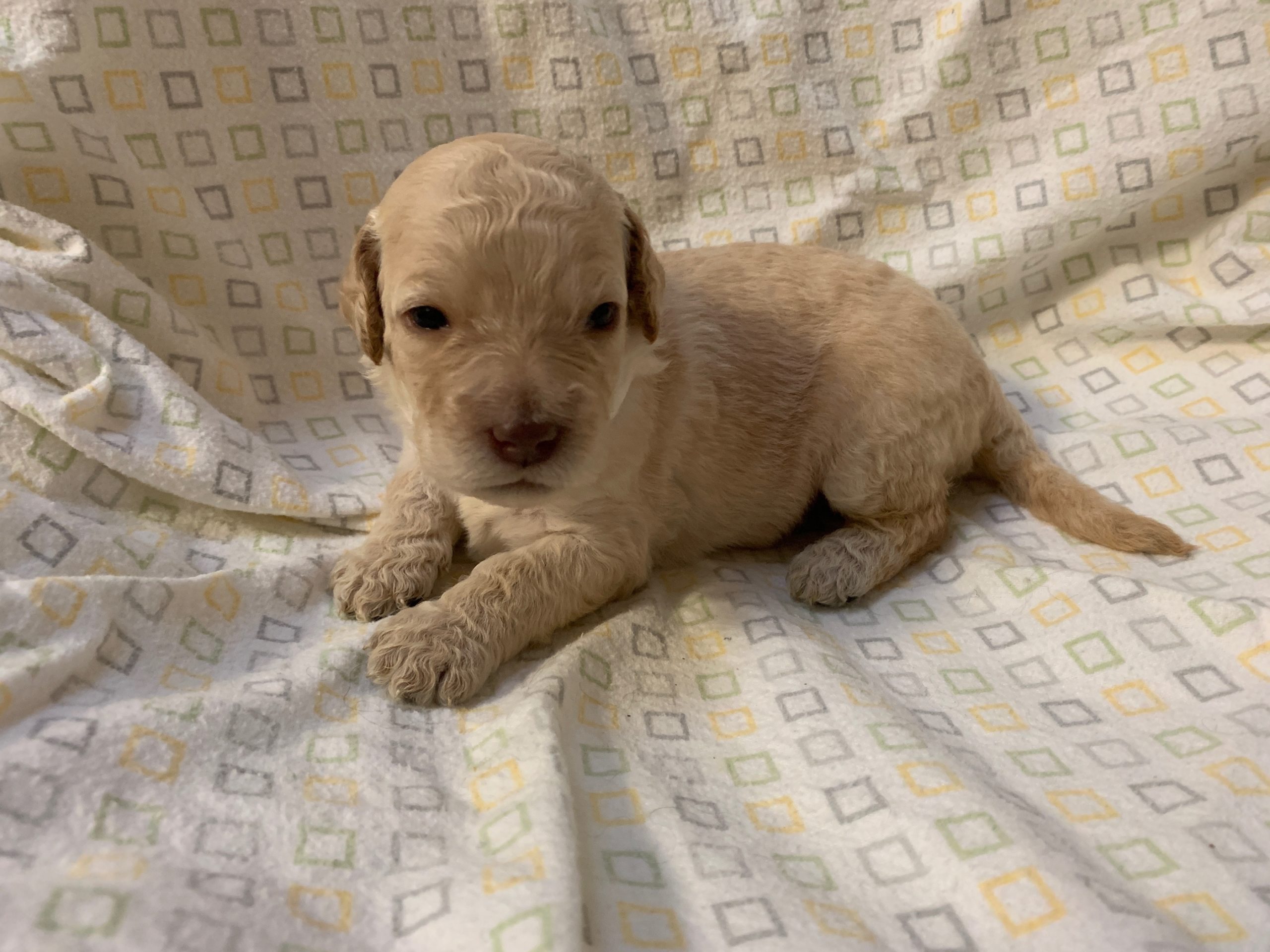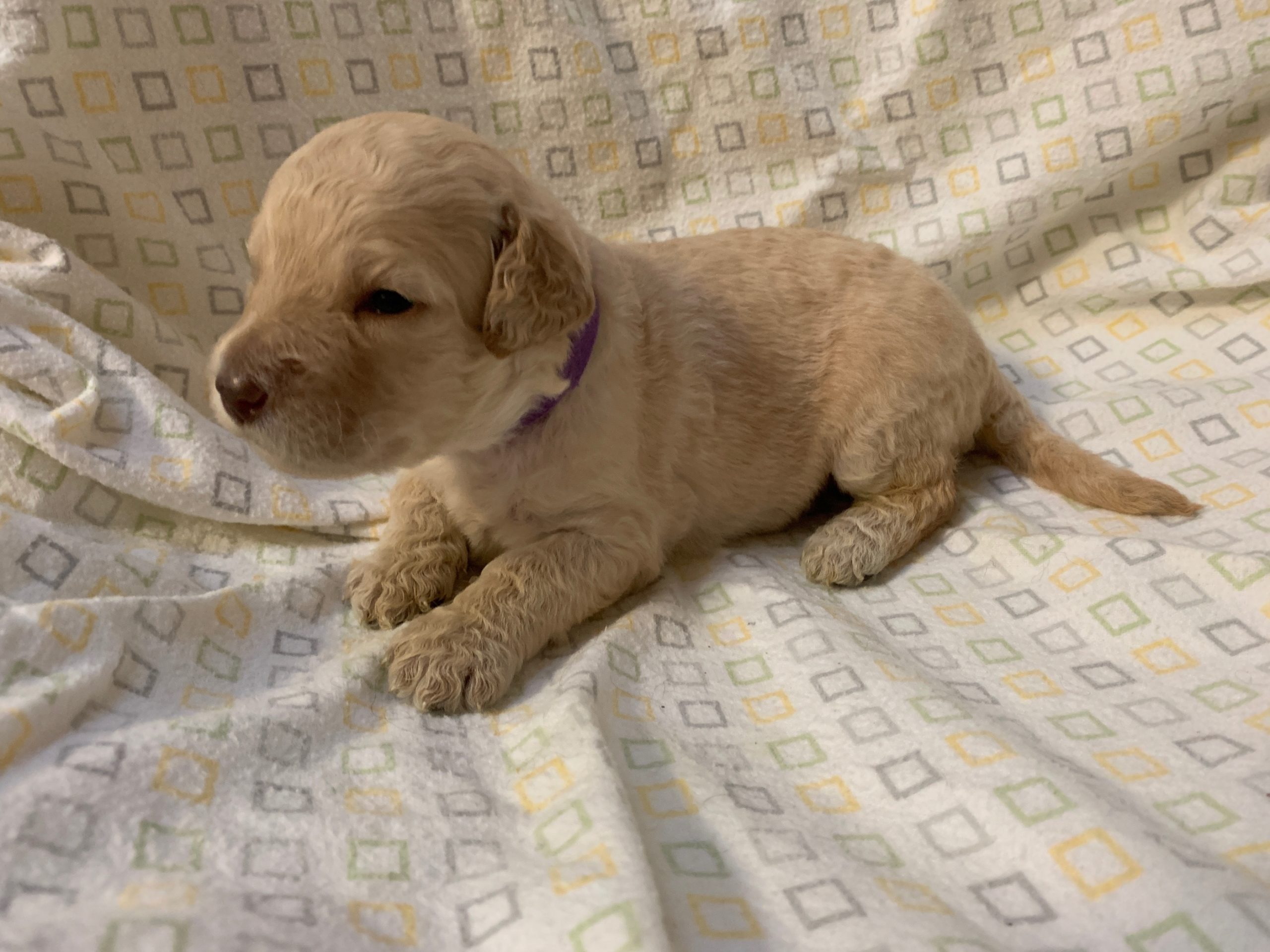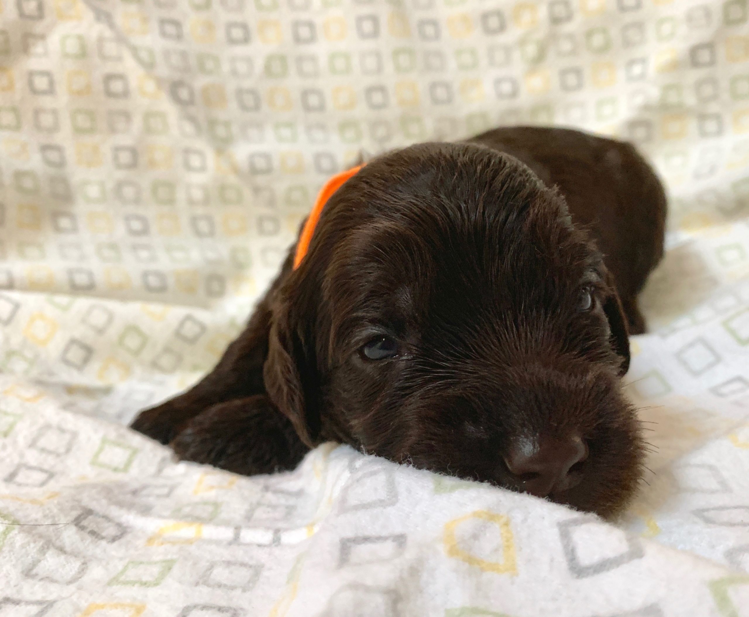 Teeth: Several of the pups have what is called “baseline narrow” teeth and that matters with some breeds, but with the labradoodle, our vet says this is very common, especially in the larger size (we find this in almost every standard size litter we have). Not to be confused with an overbite or an underbite, and we have never had a pup in all these years where it didn’t resolve itself as the teeth continue to develop and the adult teeth come in. Our warranty covers teeth issues, so no worries. I would never NOT choose a pup you love, because his baby teeth are showing to be baseline narrow. The following pups have baseline narrow teeth that are still developing: Loraine, Lulu and LIndsey.