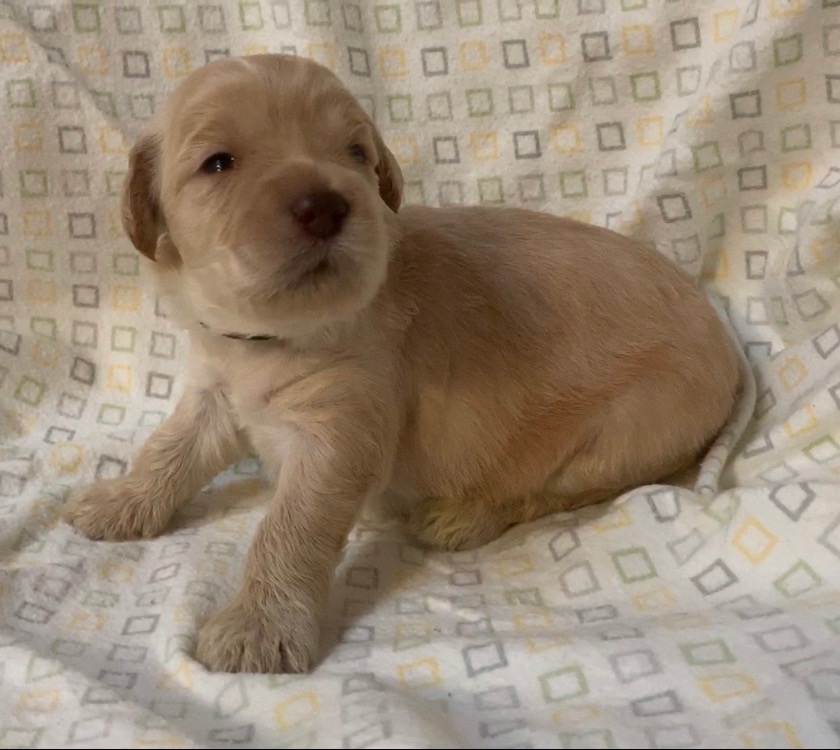 June 28, 2020 – Lizzy’s pups are almost ready for home. They’re getting more and more comfortable in a crate by themselves and more confident each day at everything we introduce them to. They are getting rambunctious as they chase and wrestle and knock each other over in play (what we expect at this age) but they are still mostly quiet and they love to snuggle. They love their humans and are tracking and following us humans as we expect from a well-raised labradoodle. Here are the pictures we took of them today! Tomorrow we’ll post more anything notable that we see from their temperament testing scores. We’ll also post their official weights from the vet so that you can see any sizing differences. Tomorrow afternoon is their final vet exams, shots, microchips and nails trimmed at the vet. A busy day!