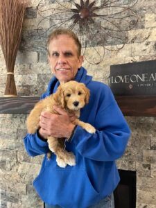April 14, 2021 – Piper and Bear’s pups are nearing seven weeks old now and we’re on the home stretch with our time with them here. Tomorrow is their vet appointment for exams and microchips as we ready them for their forever families. We continue to do crate training, with two to three naps in a crate each day. Each day, they cry a little less. Whew, crate training is loud and takes time, but it will help them adjust when they are home and have to get used to being away from us and their siblings. Mama Piper still pops in to see them periodically, but they are fully weaned from mama. We continue our work this week on leash training, blow drying, vacuums, and sound conditioning. They are growing in confidence each day. We find at seven weeks, their personalities are just starting to show, and their personalities will form more at home as they are influenced by their new pack leaders and their new environment. We also find consistently, that the pups score almost identical on temperament testing due to all the same conditioning steps we do with each pup starting at only four days old.