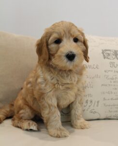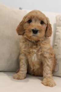 March 30, 2021 – Piper and Bear’s pups are almost five weeks old now. They are doing great with all of their conditioning and are growing in confidence every day. They are unfazed by any of the “scary” sounds we introduce them to and completely fall asleep to sounds of thunderstorms, vacuums, fireworks and more. They are not showing any shyness with people and their socialization is exactly where we want them to be at this age. We are working on naps in crates every day now. They cry a bit, but that doesn’t last very long. We give them NO attention until they are quiet, as we ignore bad behavior and reward the good. We’ll continue this pattern of two to three naps a day in a crate so that they are conditioned to a crate and also are learning to be okay apart from their litter. (All hard challenges for a young pup, but we want to make the transition as easy as we can for everyone.) They will still have some adjustment (and even some crying) when they leave us and their litter, but the transition time should be brief.