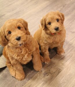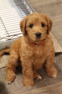 This week, we are working on leash training and daily naps in a crate by themselves. They are learning how to be content, away from their siblings, alone. They cry a bit (or sometimes a lot) but we reward them by letting them out when they are quiet. They’re getting it! Soon they will learn to love their crate. It’s so important for their overall security and temperament to learn how to quiet themselves and be content all alone with their favorite toy and bone.