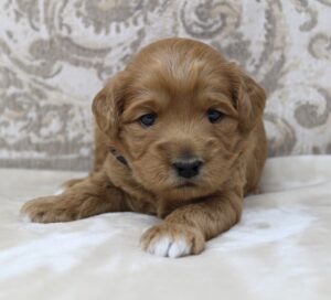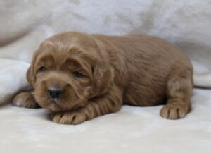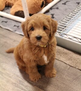 April 22, 2024 – Zoe’s puppies are fully weaned from mama now and are growing so fast. They are completely focused on us humans now, just as we want. They track and follow us, they play hard, but absolutely love being held. They love snuggle time. We’re happy with their temperaments and we’ll continue with conditioning them in these final days that we have with them. Crate time is still hard, and loud. But we don’t give in, and they’re fussing doesn’t last too long. We know how important crate training is for their overall temperament and lifelong security! Today, we start leash training and we’ll expose them to new things each day. Here are the pictures we took of them today. So cute.