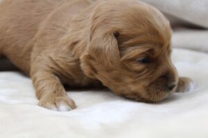 April 1, 2024 – The pups are so healthy, fat and chunky! They’re doing well, and mama dotes on them and they barely have to move to be cared for or fed. They squeak and she’s right there. Such a quiet, litter! They have become chubby and lazy, and this is what we would expect from a small litter of three. No fighting for milk, no having to wrestle their way to mama for every meal. So the opposite side of that, is we have to encourage them to walk and get up and move. Ha, ha! Today, we did lessons on walking and encouraging them to move around and play. They’ll be off and running soon, but unlike a larger litter, they need more encourage.